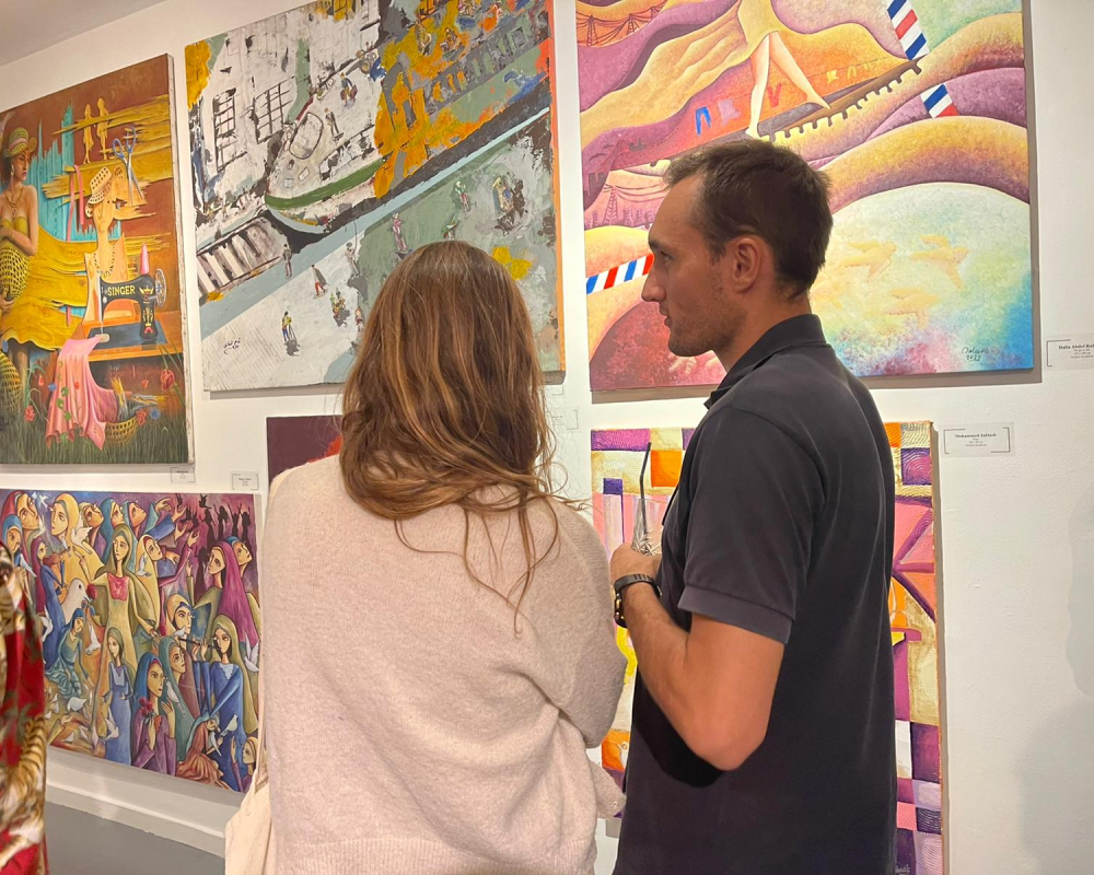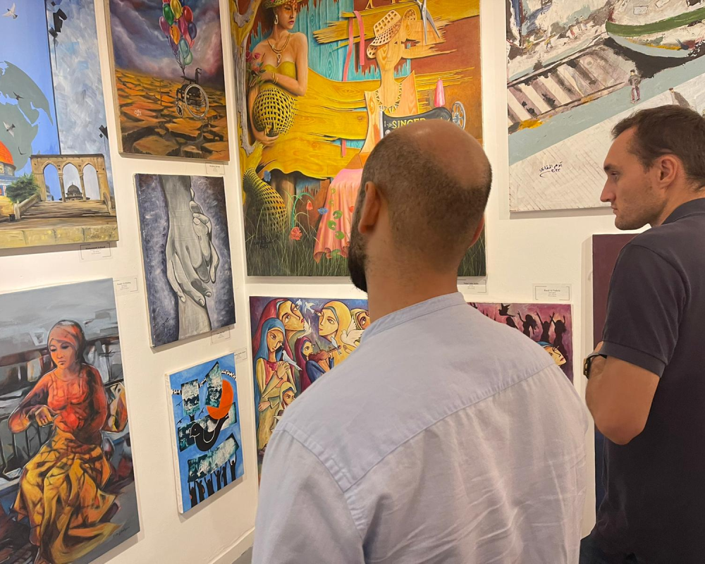 وجرت فعاليات افتتاح المعارض بحضور نخب من الفنانين الفلسطينين وادارة المعرض الفني ممثلة بمدير الفندق المحاط بالجدار وسام سلسع وعدد من الفنانين الى جانب حضور واسع سواء من قبل المواطنين الفلسطينين او السياح حيث عجت قاعات المعرضين بالحضور الذي استمتع باللوحات الفنية.