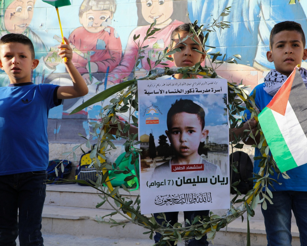 بيت لحم /PNN/ نجيب فراج- كان اليوم الاحد هو اليوم الاول للدراسة في مدرسة الخنساء الاساسية المختطلة ببلدة تقوع الى الشرق من بيت لحم بعد استشهاد الطفل ريان ياسر سليمان الذي توقف قلبه عن الخفقان يوم التاسع والعشرين من الشهر الماضي بعد ملاحقته من قبل قوات الاحتلال الى داخل منزله.