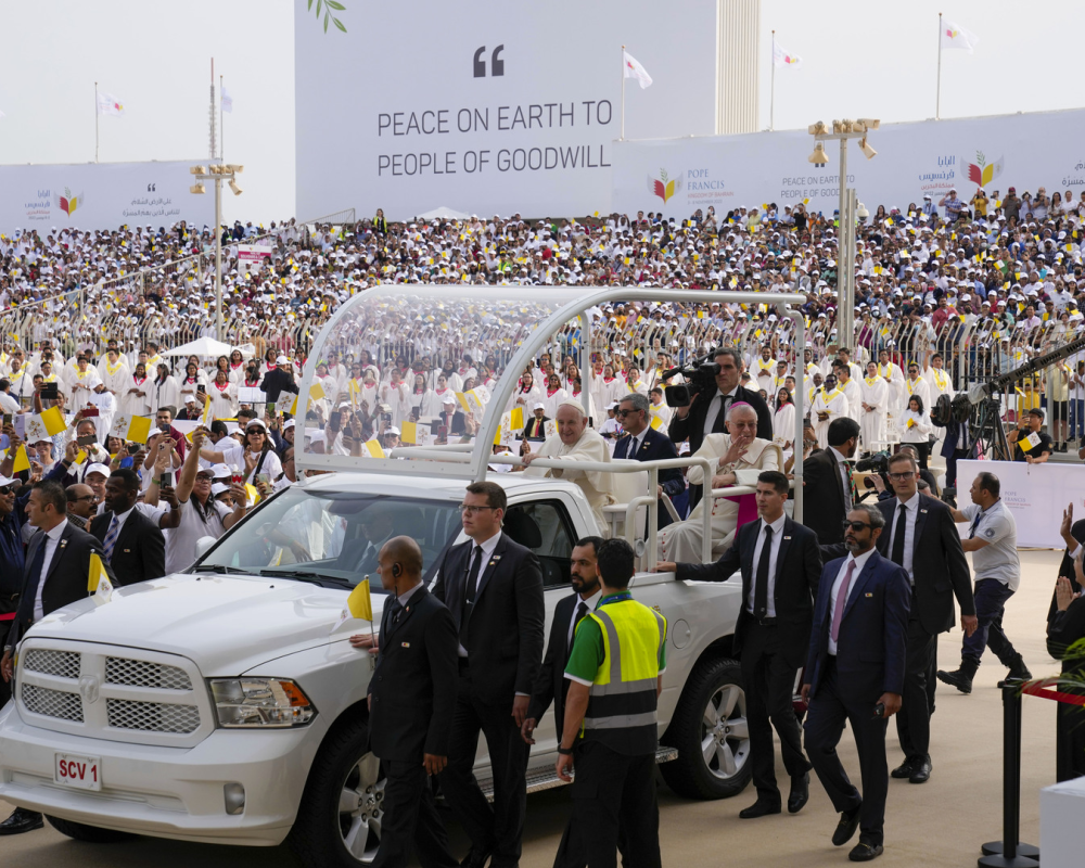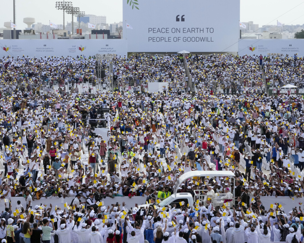 المنامة/PNN- أقام البابا فرنسيس قداسا حضره آلاف الكاثوليك في البحرين اليوم السبت، مما أدخل السرور على أعضاء الجالية الكاثوليكية الأجنبية الصغيرة من جميع أنحاء الخليج. وحثهم خلال الحدث على إظهار اللطف مع مضيفيهم، حتى لو تعرضوا للازدراء في بعض الأحيان.