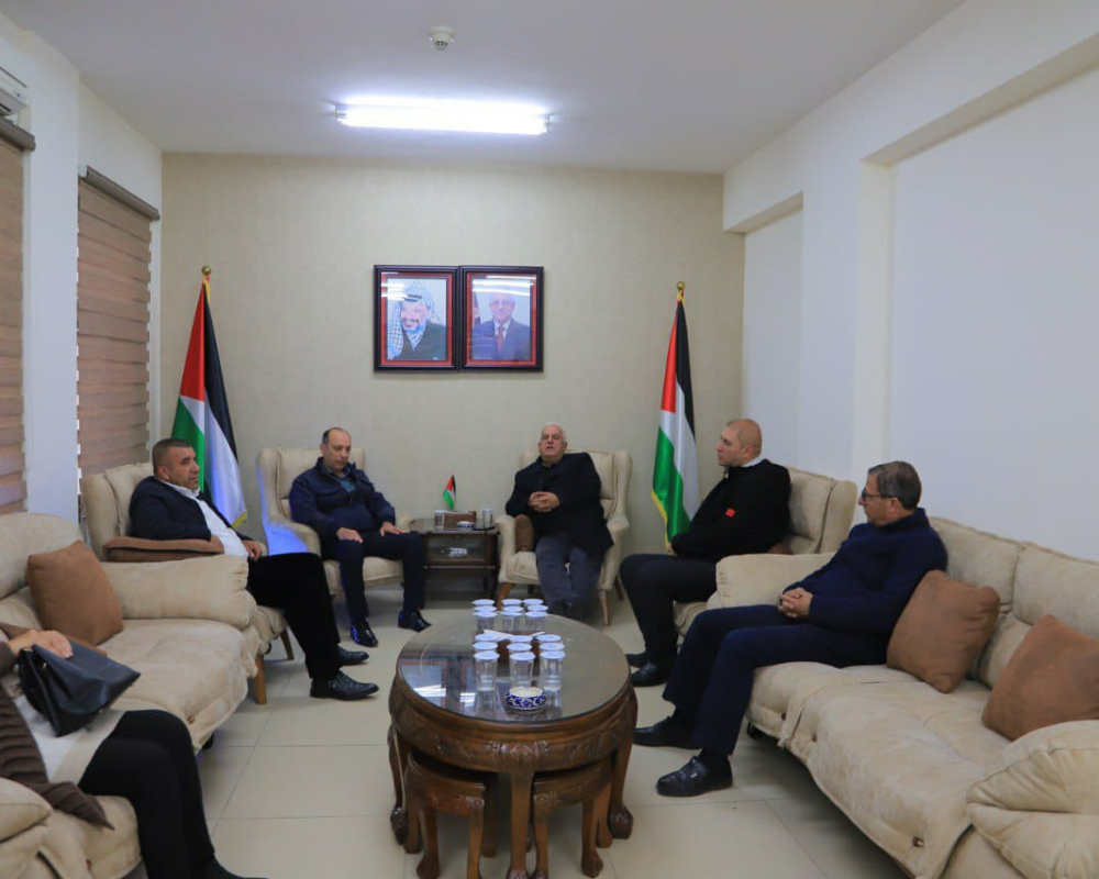 الخليل / PNN / بحث محافظ محافظة الخليل اللواء جبرين البكري في مكتبه و بحضور نائب محافظ الخليل خالد دودين مع وفد من دائرة شؤون اللاجئين في منظمة التحرير في منطقة جنوب الضفة الغربية واقع المخيمات الفلسطينية والجهود المبذولة رسميا لاسناد هذا الواقع من جهة والاليات والخطوات المطلوبة للنهوض بواقع المخيمات لتبقى مراكز وقلاع نضالية فلسطينية حتى تحقيق حق العودة الى الديار الاصلية.