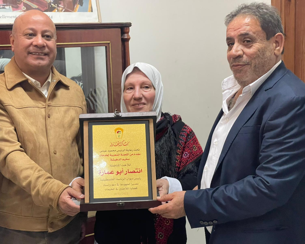 وفي نهاية الجولة قامت اللجنة الشعبية للخدمات بمخيمي الدهيشة وبيت جبرين بتسليم الدكتور احمد أبو هولي واللواء رائدة الفارس دروع تقديريا تقديرا لهم على جهودهم وعملهم من اجل الخدمات التي قدموها ويقدمونها لخدمة أبناء شعبنا في المخيمات كما تم تكريم تلفزيون فلسطين وشبكة فلسطين الإخبارية PNN على دعمهم الإعلامي وجهودهم لخدمة أبناء شعبنا في المخيمات حيث رافقوا مشروع ترميم المنازل للمخيمات من خلال تغطيات إخبارية متعددة.
