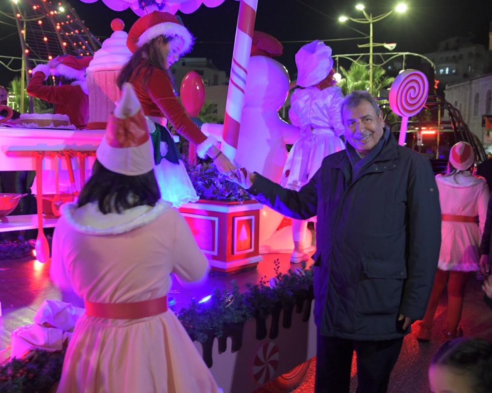 وافتتح عضو اللجنة التنفيذية لمنظمة التحرير الفلسطينية رئيس اللجنة الرئاسية العليا لمتابعة شؤون الكنائس في فلسطين الدكتور رمزي خوري الجولة الأولى لقافلة الميلاد بقص شريط الانطلاق للقافلة التي انطلقت باتجاه شارع السهل ببيت لحم مرورا بشارع القدس الخليل وشارع المهد باتجاه مدينة بيت ساحور حيث أدخلت القافلة أجواء الفرح والسرور لقلوب المواطن الفلسطيني وزوار المحافظة الذين تجمهروا على طول الشوارع التي جابتها القافلة.