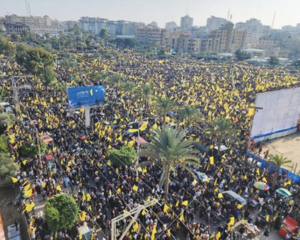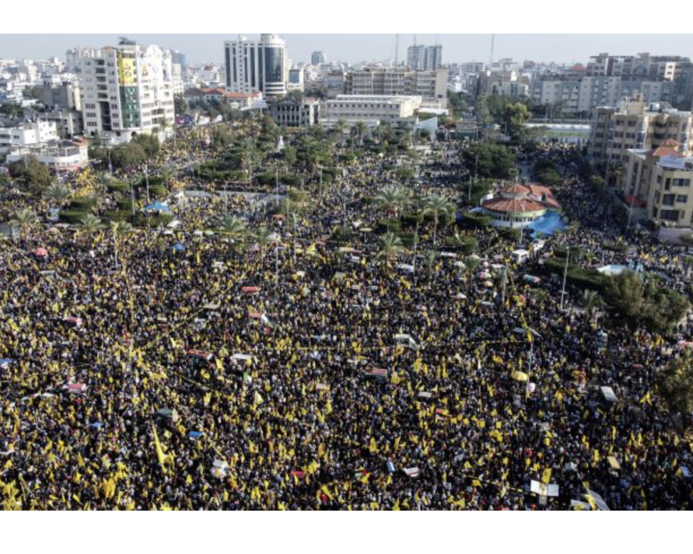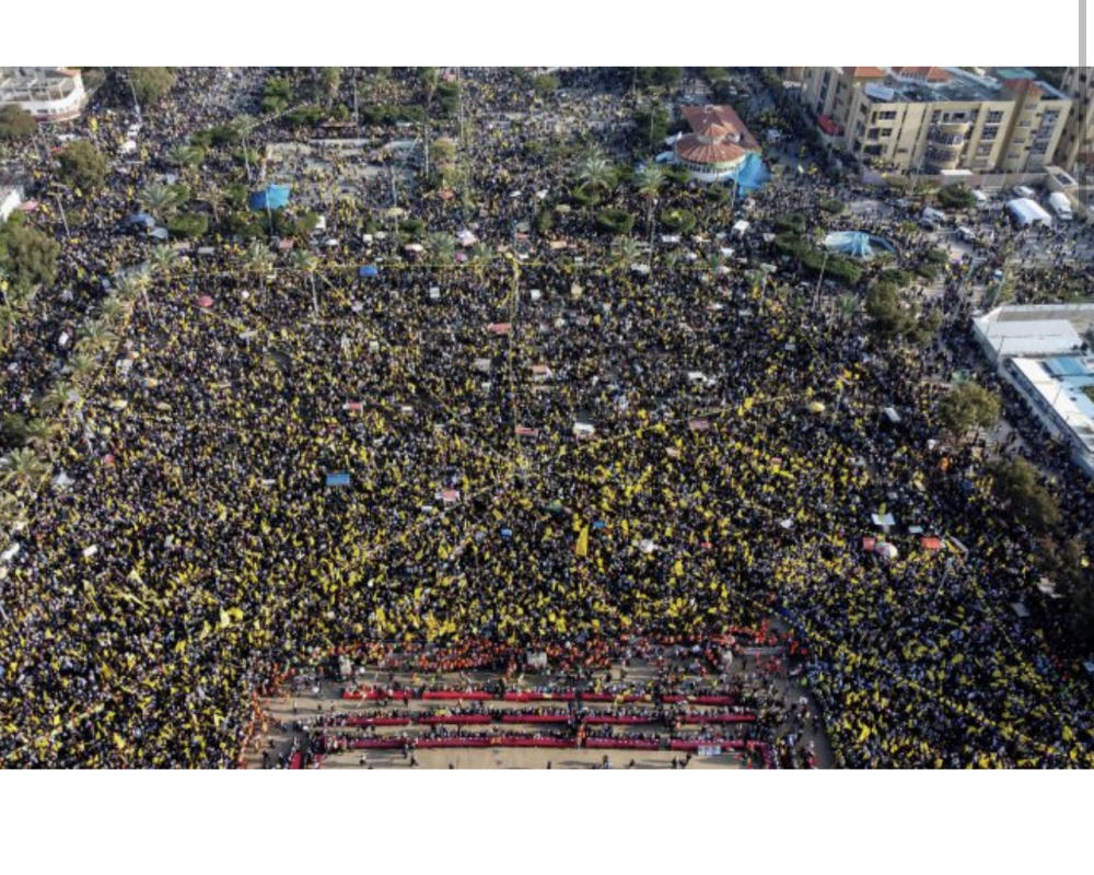 وكان مئات الآلاف من المواطنين شيبا وشبابا، وأطفالا، ونساء، وعائلات بأكملها من مختلف مدن ومخيمات قطاع غزة، توافدوا منذ ساعات الصباح الباكر إلى ساحة الكتيبة عبر مركبات خاصة، وعمومية، وحافلات، للمشاركة في المهرجان المركزي، إلى جانب تواجد عدد كبير للصحفيين من مختلف وسائل الإعلام المحلية والدولية.