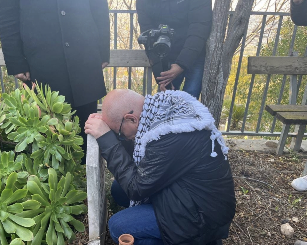 واحتضن الاسير يونس قبر والدته في مشهد مؤثر جدا وقال ان 40 سنة ونحن في الأسر وكان لدينا استعداد لتضحية 40 سنة أخرى.