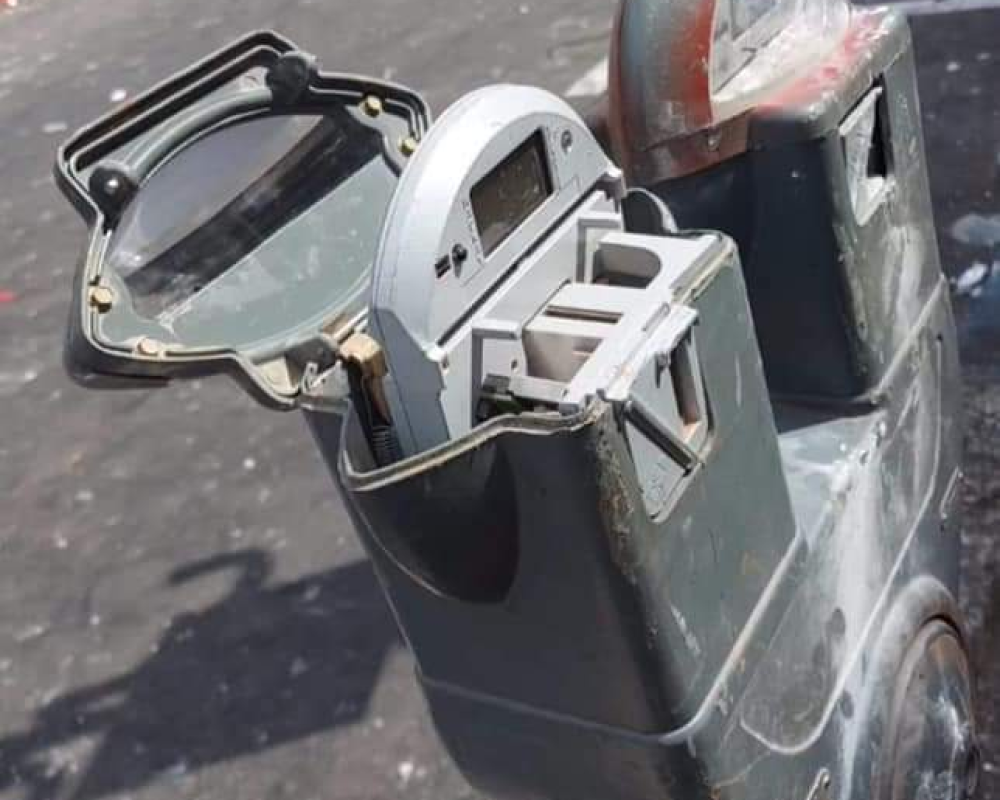 وقام المشاركون بخلع 16 عداد من عدادات مواقف السيارات وسرقة ما بها كما تم تحطيم 5 صرافات آليه و تحطيم مصابيح الاناره في منطقة الدوار.