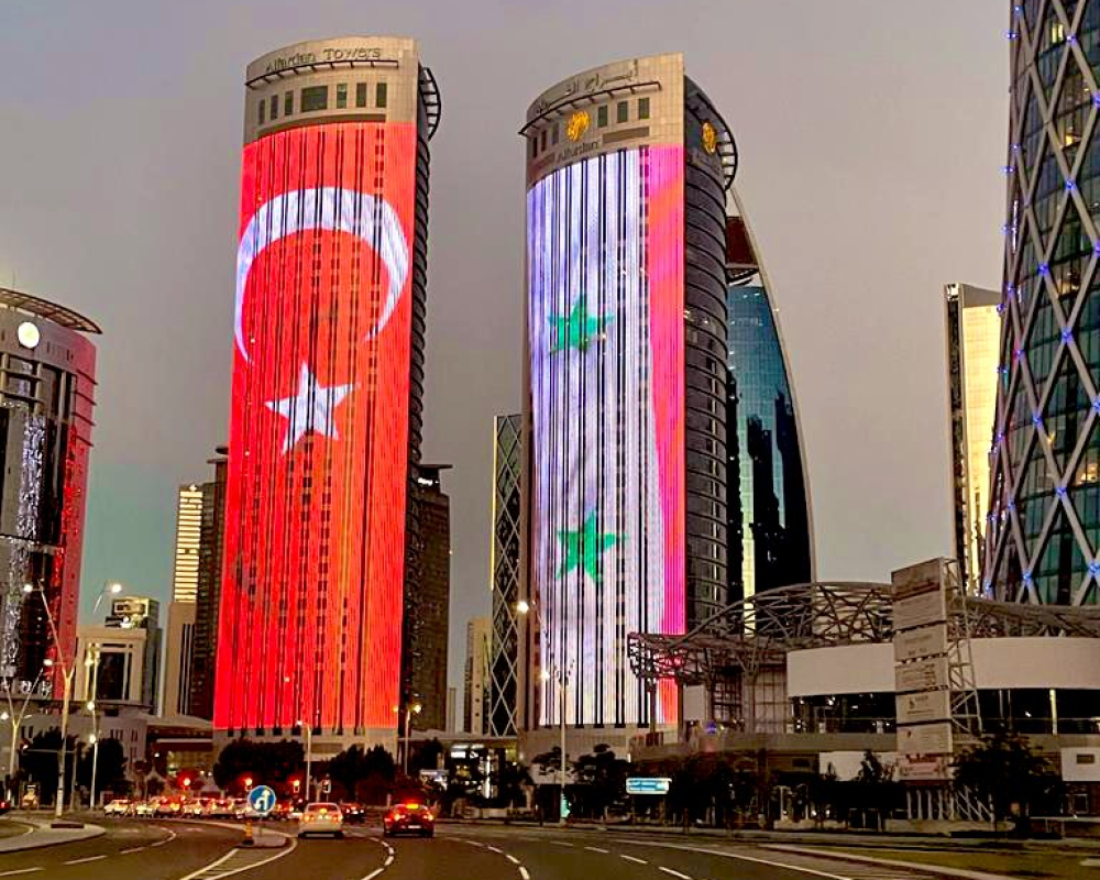 قطر/PNN- أضاءت قطر معالم عاصمتها الدوحة، بألوان العلم التركي تضامنا مع ضحايا الزلزال الذي ضرب ولاية قهرمان مرعش التركية قبل أيام.