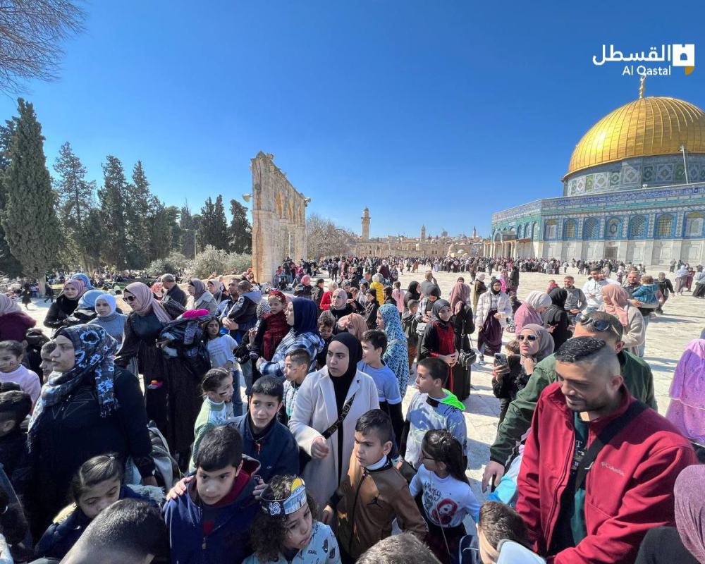 القدس/PNN- توافد آلاف المواطنين، منذ ساعات الصباح الباكر، إلى المسجد الأقصى المبارك، للصلاة، وإحياء ذكرى الإسراء والمعراج.