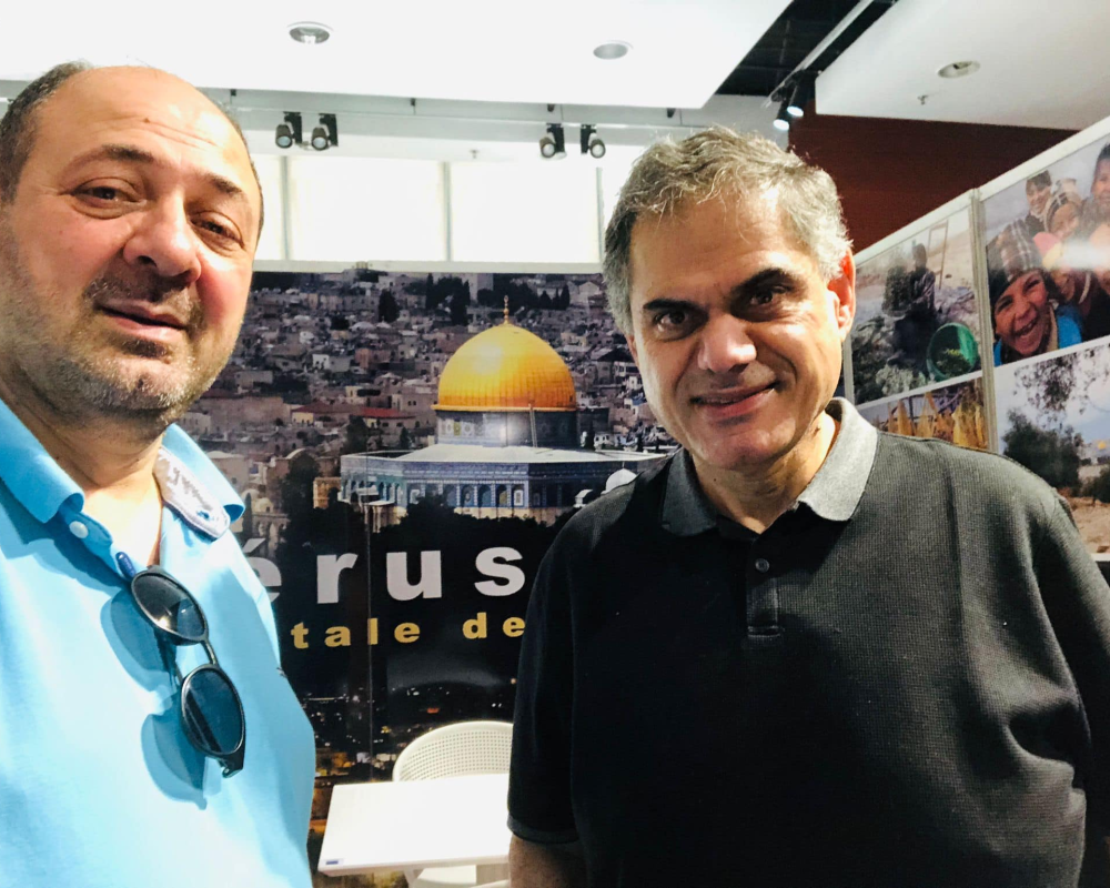 اما شعار الفعالية والذي تم تصميمه بخط عربي جميل ، فقد وضعه الخطاط والفنان الفلسطيني القادم من باريس احمد داري .