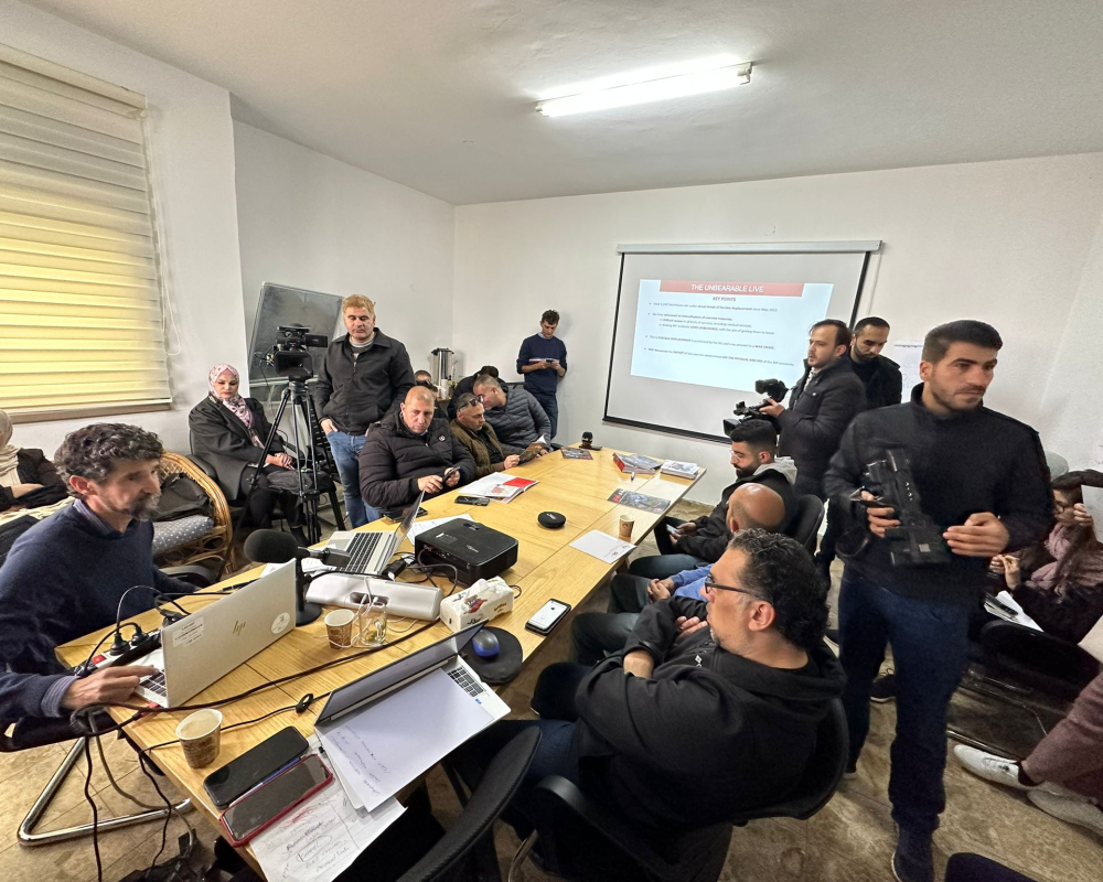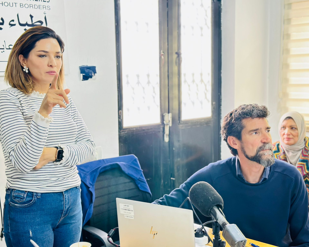 وتحدث في المؤتمر الصحفي رئيس بعثة منظمة أطباء بلا حدود حيث تناول التقرير الذي تم اصداره بنحو ثمانية وعشرين صفحة و بعدة لغات منها العربية والانكليزية والعبرية واقع حياة المواطنين الفلسطينين في مسافر يطا والبالغ عددهم 1200 فلسطيني والاثار السلبية لاجراءات الاحتلال وسياساته العنصرية عليهم حيث تعكس قرارات التهجير القسري وهدم المنازل والحواجز العسكرية ومصادرة المركبات عوامل سلبية على صحتهم الجسدية والنفسية.
