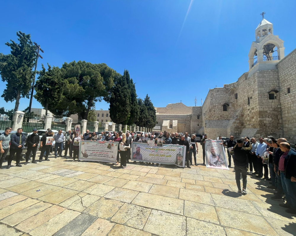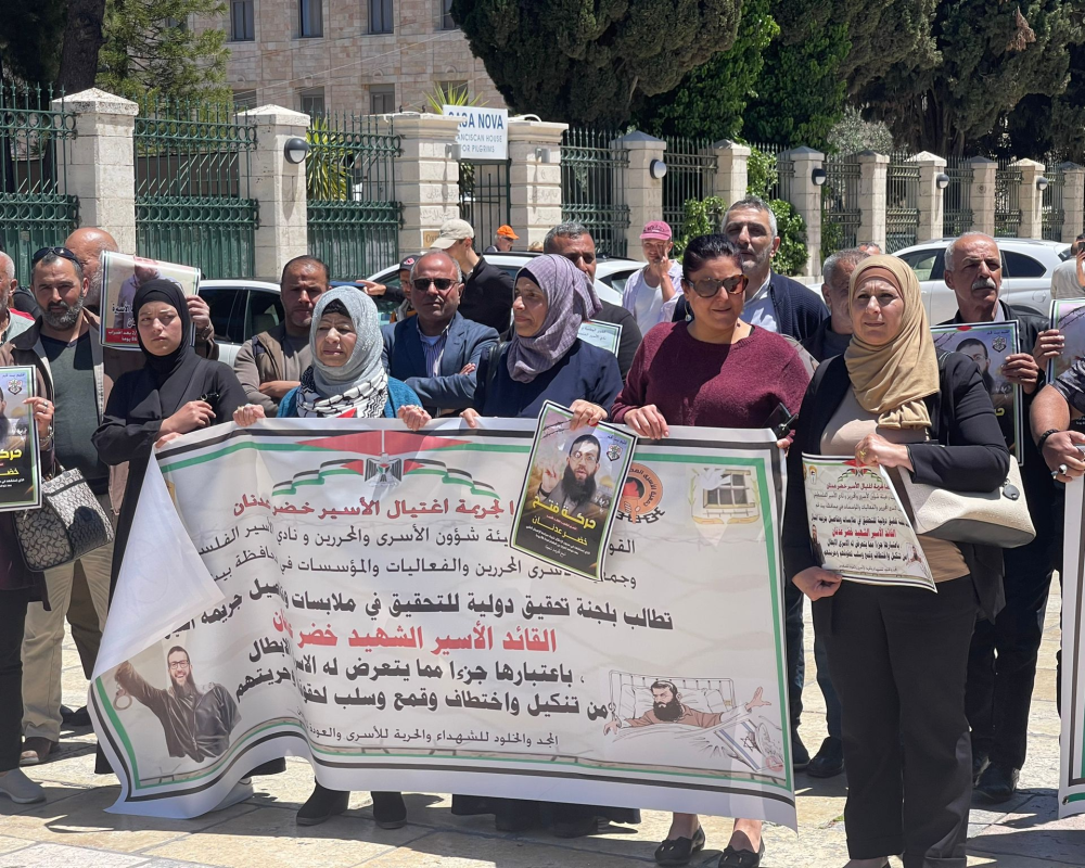 بيت لحم / PNN / نظمت لجنة التنسيق الفصائلي وهيئة الاسرى ونادي الاسير وجمعية الاسرى والمحررين فعاليات متعددة للتعبير عن استنكار شعبنا للجريمة البشعة التي ارتكبتها سلطات الاحتلال بحق الاسير الشهيد الشيخ خضر عدنان حيث تضمنت الفعاليات وقفة احتجاج بساحة المهد وفتح بيت عزاء للشهيد ببيت لحم