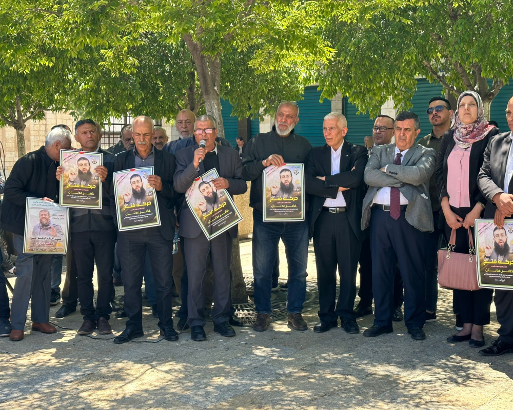 وتخلل الوقفة رفع صور الشهيد خضر عدنان والقاء كلمات تندد بجريمة الاحتلال من وتشير الى ان حجم التقصير اعطى الفرصة للاحتلال بالاستفراد بالشهيد عدنان وكل الاسرى.