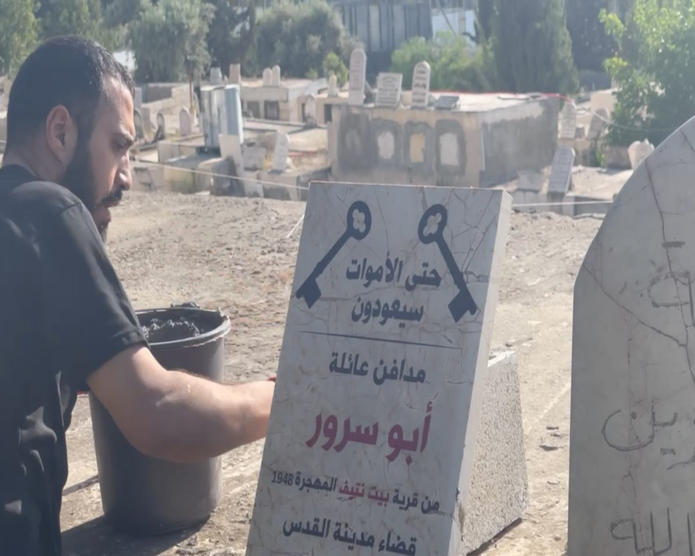 بيت لحم /PNN/ شكلت فعالية نصب شواهد القبور الخاص بالعائلات المهجرة وقراها والتي تم تنظيمها تحت عنوان حتى الأموات سيعودون في رمزية محاكاة العودة الحتمية لقرانا المهجرة احياء وامواتا و وفاء لوصية الإباء والاجداد بعدم التفريط بحق العودة شكلت هذه الفعالية استفزازا لجنود الاحتلال الذين قمعوا المواطنين عبر اطلاق قنابل الغاز على المشاركين فيها.