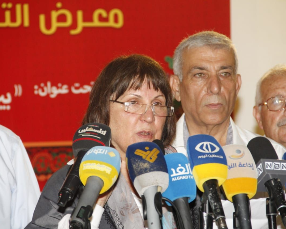 وألقت كلمة الجمعيات الأهلية المنظِّمة للمعرض الإعلامية منى سكرية، شكرت في بدايتها الحضور على المشارَكة في هذا المعرض التراثي الفلسطيني، معتبرة أن يوم التحرير هو يوم من محطات مسيرة تحرير فلسطين من بحرها إلى نهرها، مبارِكةً للشعب الفلسطيني على صموده في وجه جميع المحن التي تكبدُّوها ولم تنل من عزيمتهم، ولم تحنِ هاماتهم بتضحيات مقاومي فلسطين.