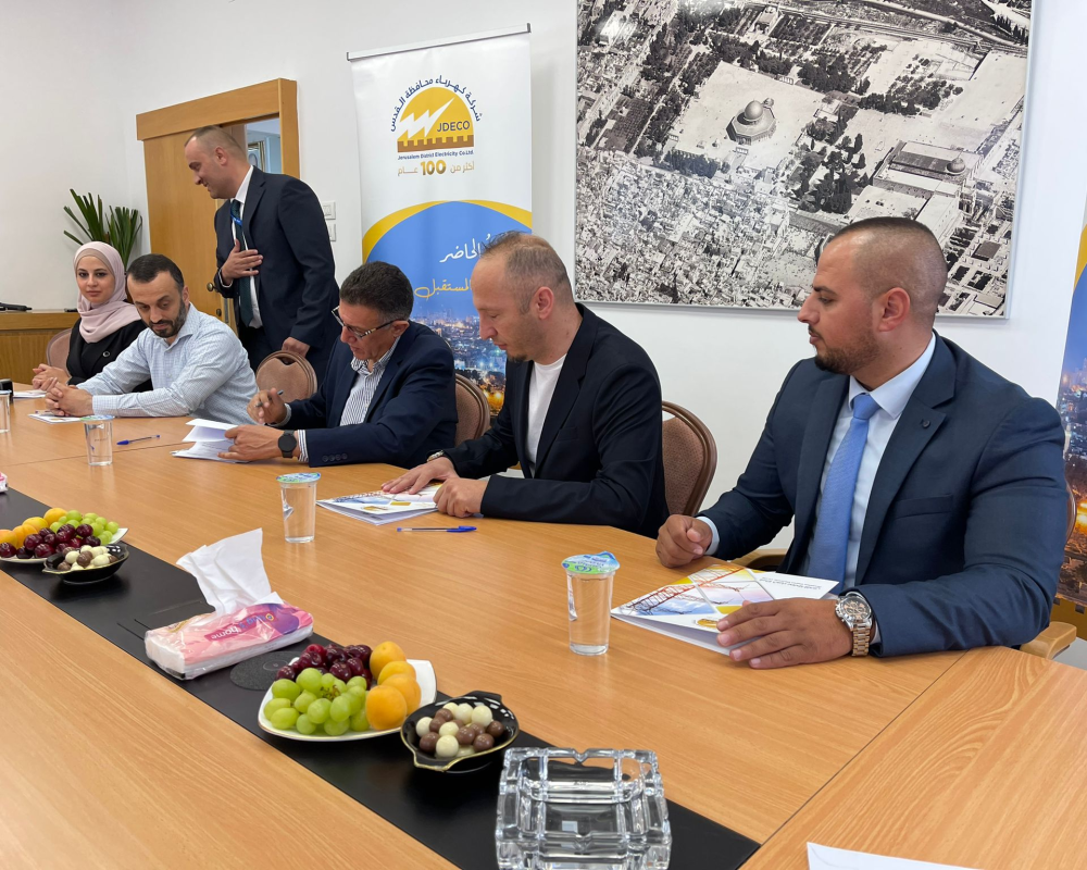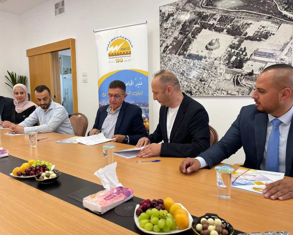 و ضم وفد مؤسسة الرؤيا الفلسطينية السيد أحمد عبد الوهاب مدير المشروع و الآنسة رهف أبو عرفة منسقة البرامج التدريبية فيما حضر من كهرباء القدس مساعد المدير العام للشؤون المالية السيد فراس القواسمي المهندس بسام بدر مدير مركز التدريب و السيد فراس جبران مدير العلاقات العامة الخارجية و البروتوكول والمهندسة إسراء صلاح مديرة المشروع عن مركز تدريب شركة كهرباء القدس.