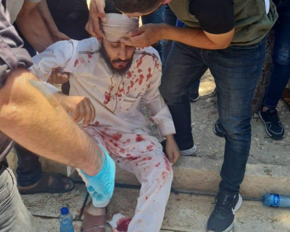 وتعاملت طواقم الهلال الأحمر الفلسطيني مع إصابة كسر في القدم جراء قنبلة صوت، وجرى نقلها من المسجد الأقصى إلى المستشفى لتلقي العلاج.