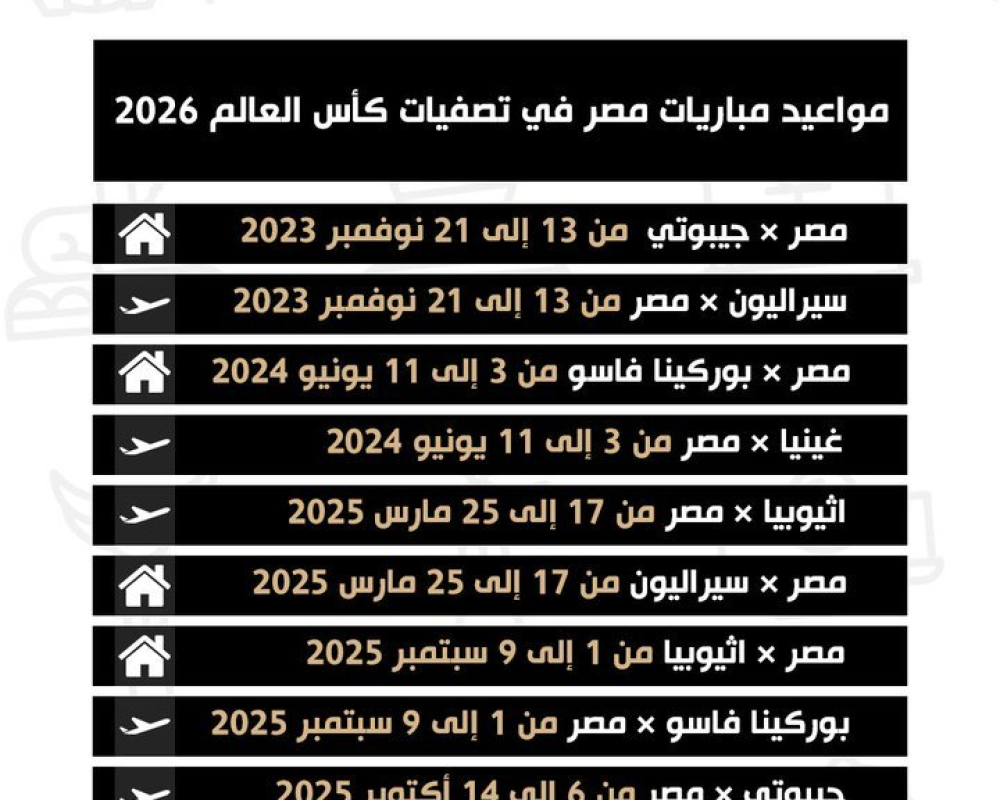 القاهرة/PNN- كشف الاتحاد الإفريقي لكرة القدم "كاف"، عن مواعيد مباريات منتخب مصر في التصفيات المؤهلة لمسابقة كأس العالم 2026 بأمريكا والمكسيك وكندا، عن القارة "السمراء".
