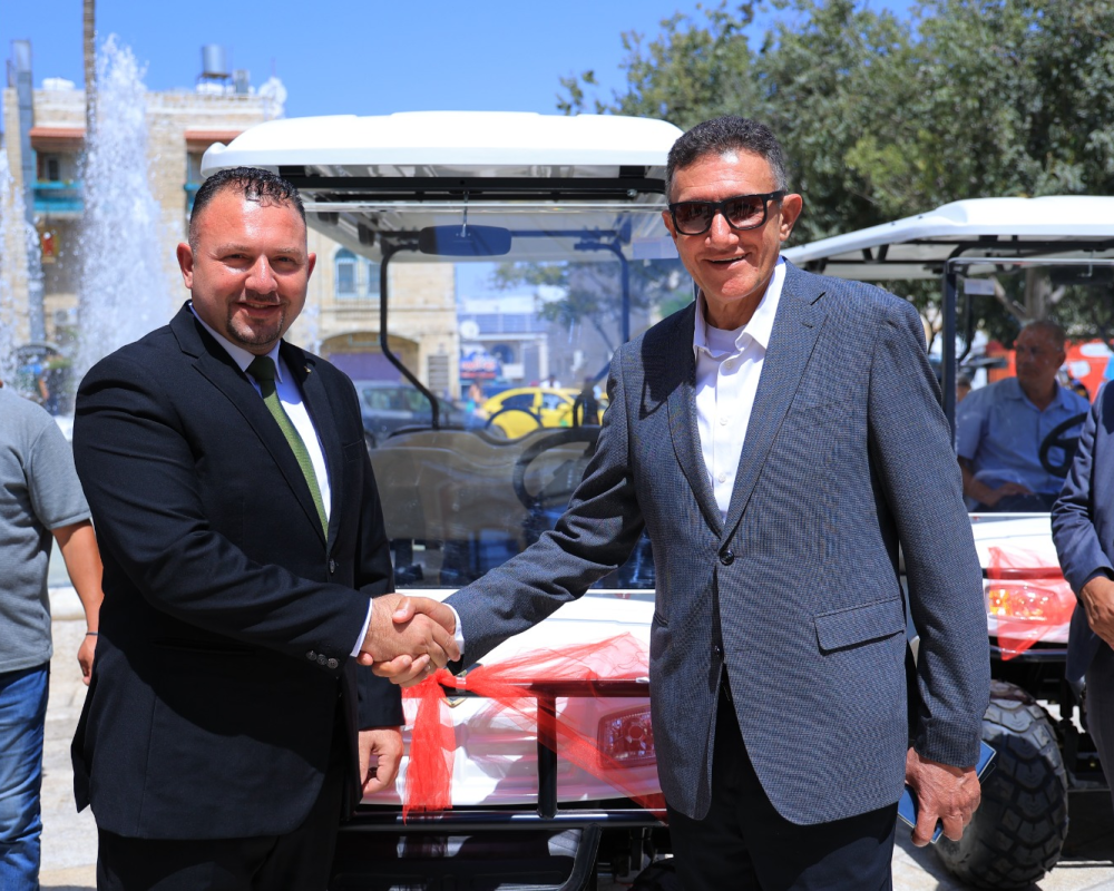 بيت لحم /PNN/ في اطار مسؤوليتها الوطنية والمجتمعية، قدمت شركة كهرباء محافظة القدس مركبتين كهربائيتين لصالح بلدية بيت لحم وذلك دعما لامكانيات البلدية في خدمة السياح الذين يزرون المدنية سنويا.