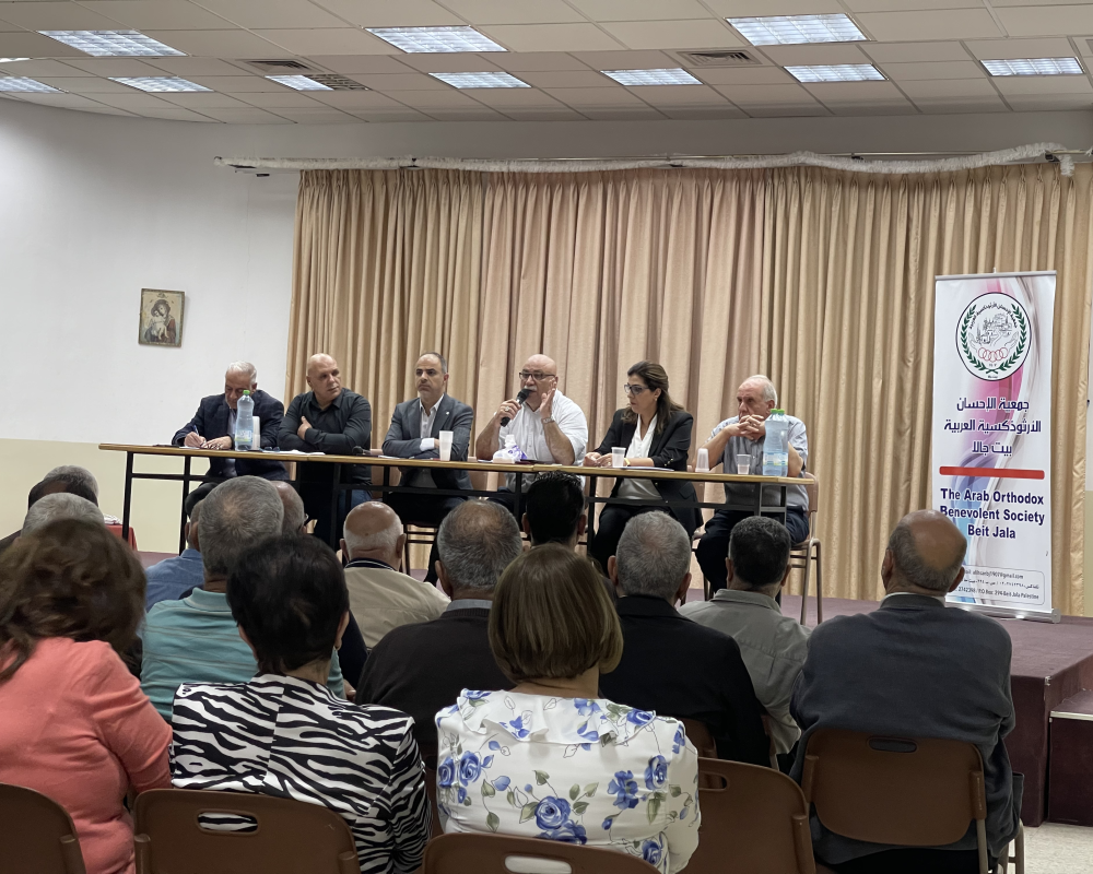 و تحدث ابو غنام عن بواطن الخلل في البلدية من اعضاء مجلس من كتلة الاغلبية وموظفين كما وطالب ابو غنام اهالي بيت جالا باخذ دور اقوى واكبر والوقوف عند مسؤولياتهم لتصويب الاوضاع فيالمجلس الذي هو مجلس خدماتي وليس استثماري مشددا على ان هناك تراجع في مستوى العمل والخدمات.