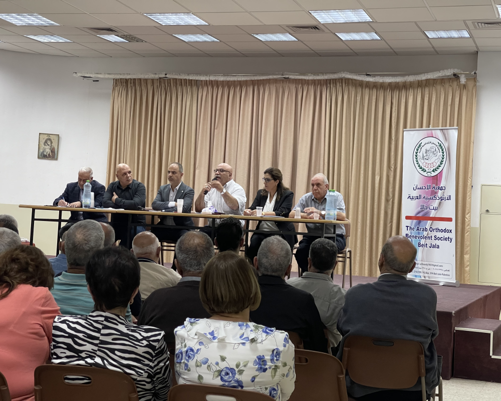 بيت جالا /PNN /نظم اعضاء كتلة فصائل منظمةالتحرير في بلدية بيت جالا لقاء جماهيريا ومؤتمراصحفيا للحديث عن واقع الحال في المدينة وما اسموها تجاوزات من كتلة الاغلبية في المجلس البلدي.
