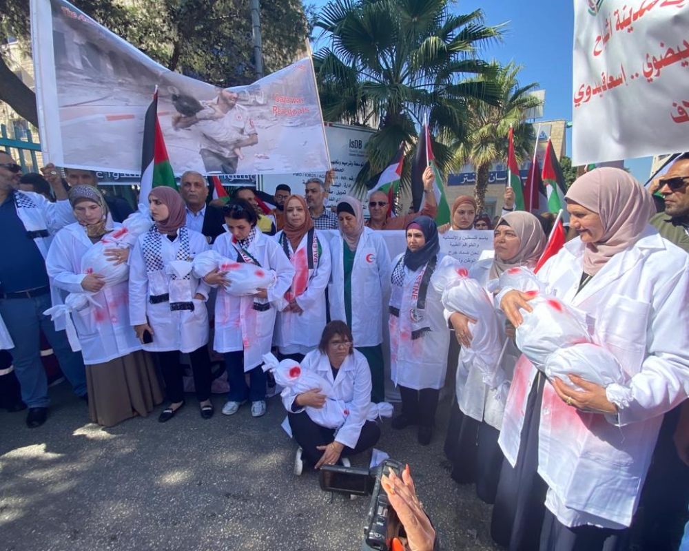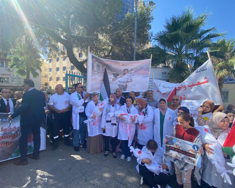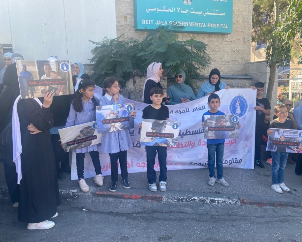 وكان القائمون على تنظيم المسيرة نظموا وقفة جماهيرية حاشدة امام مستشفى بيت جالا، رفعوا فيها الاعلام الفلسطينية والشعارات المنددة بمجازر المحتلين بحق شعبنا في قطاع غزة، ومجسمات لجثامين أطفال ارتقوا بسبب قصف طيران الاحتلال لمنازلهم.