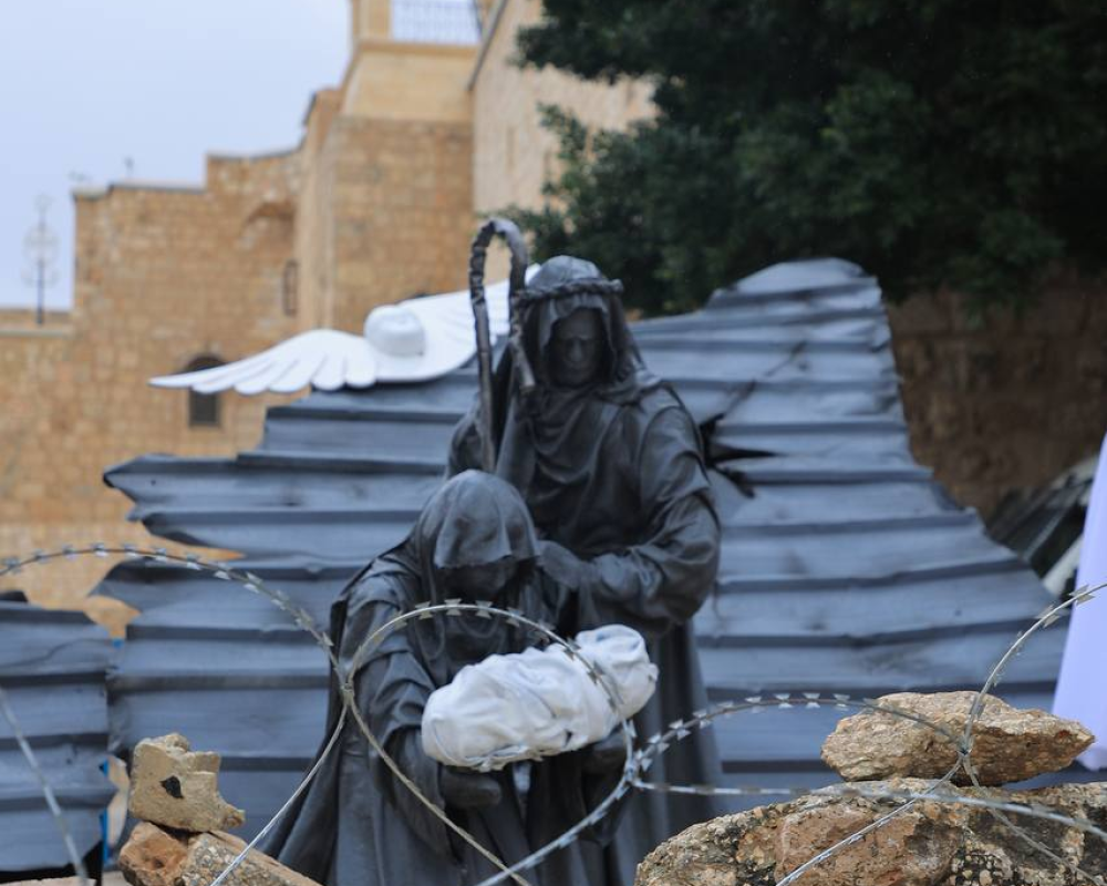 وخلت ساحة المهد التي استقبلت على بلاطها استقبال البطريرك بير باتستا بيتسابالا، من كافة مظاهر الاحتفالات، لمناسبة عيد الميلاد، فغابت شجرة الميلاد وحلت مكانها مغارة "الميلاد تحت الأنقاض"، واختفت الزينة في الشوارع والاحياء.