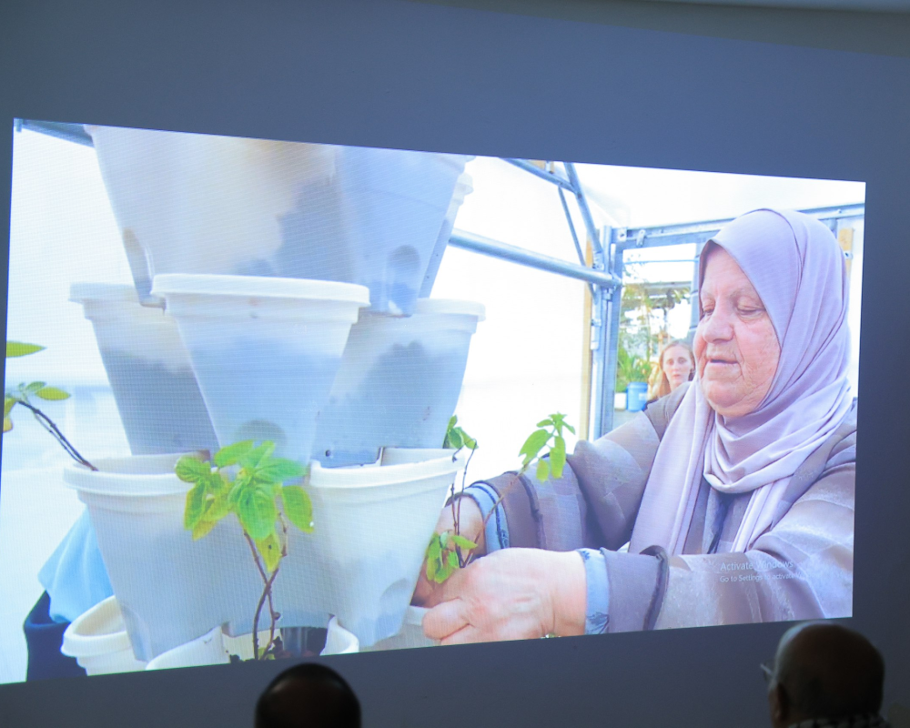 وفي بداية اللقاء رحبت اسراء ابو سرور بالحضور واكدت ان هذا الاطلاق اليوم ليس احتفال بقدر ما هو تعريف بانطلاق العمل لجمعية تعمل على تعزيز الصمود ومواجهة الاحتلال من خلال حماية البيئة وتعزيز الاقتصاد المنزلي عبر برامج الزراعة البيئية والمائية على اسطح منازل المخيم او من خلال استصلاح الاراضي المستهدفة.