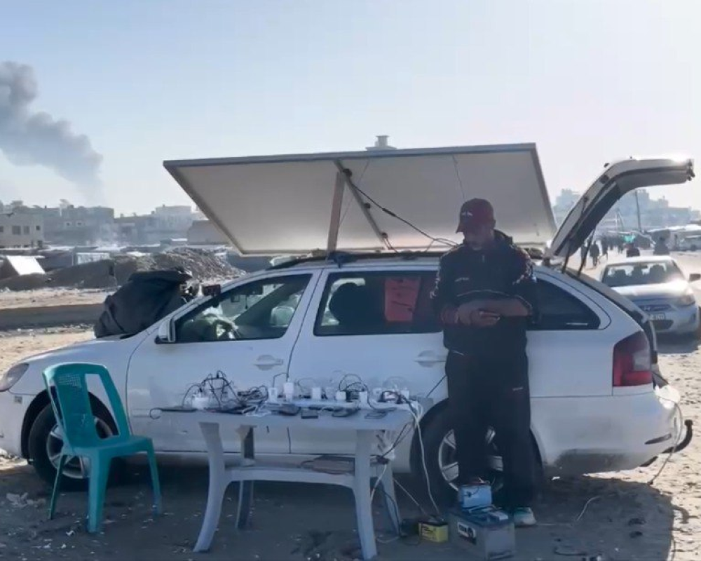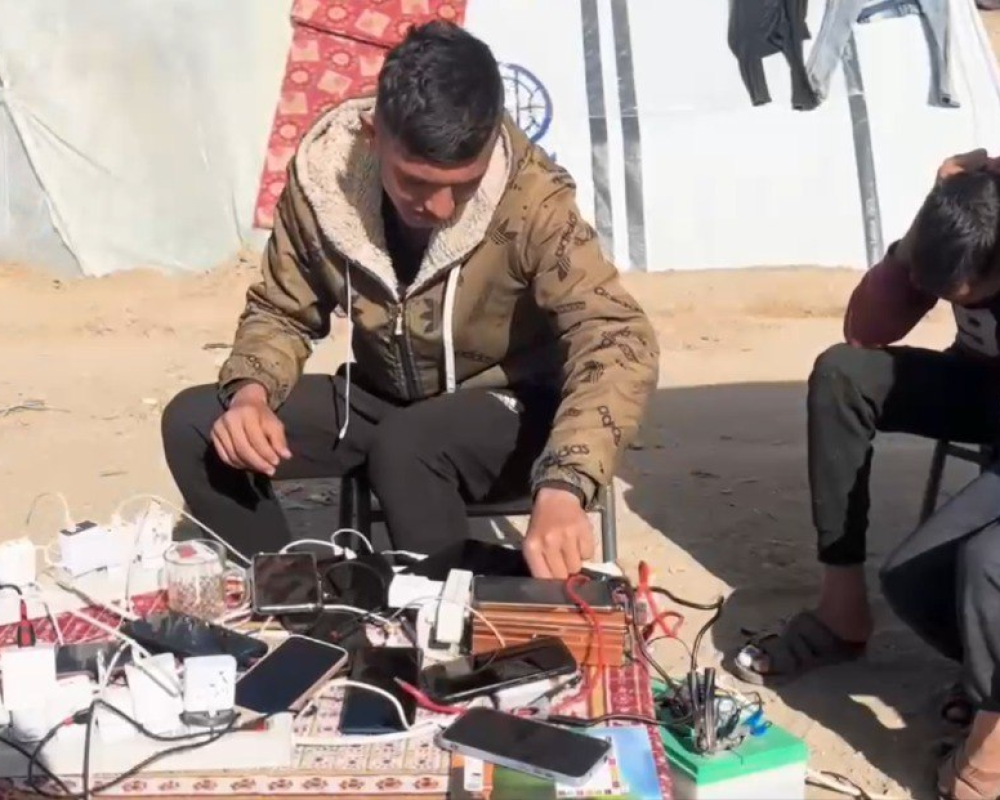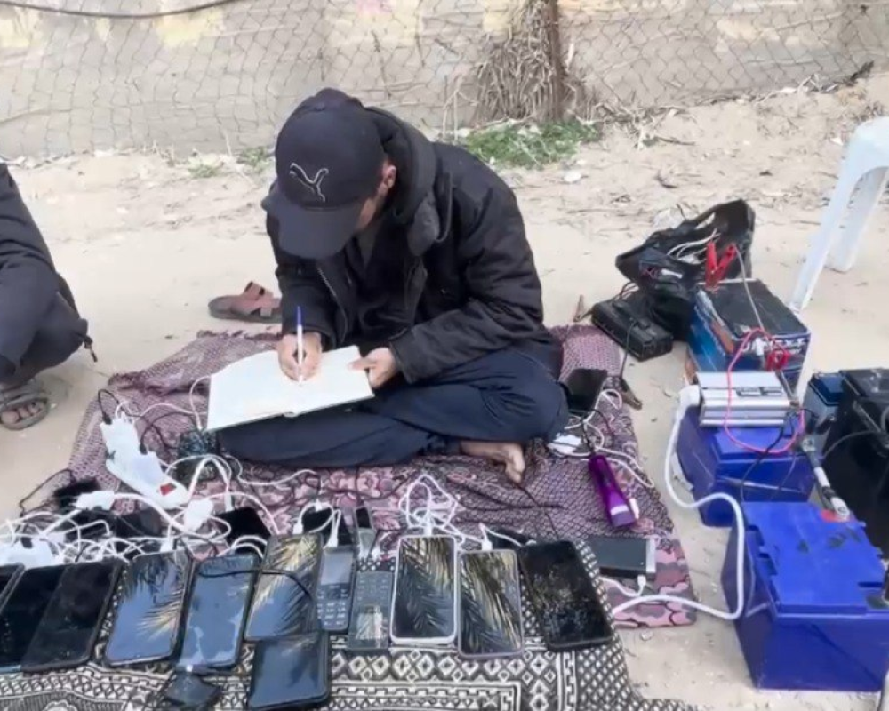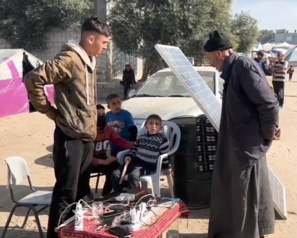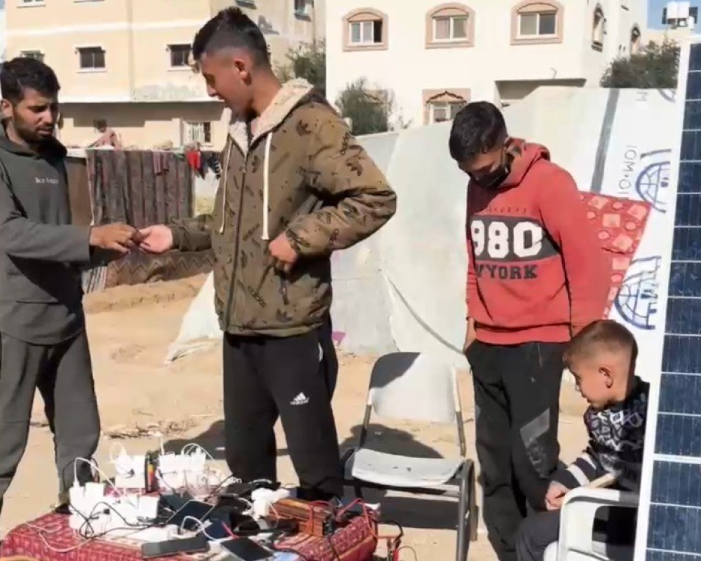 ومع انقطاع التيار الكهربائي وعيش اللاجئين في خيم النزوح ومدارس الأونروا التي تفتقر لمقومات الحياة الإنسانية أصبحت الهواتف النقالة التي كانت رمزا للاتصال والحياة بلا أي قيمة لولا بعض الواح الطاقة الشمسية التي استخرجها بعض المواطنون من اثار الدمار في المباني والعمارات لتصبح مجددا أداة لإعادة شحن الهواتف للنازحين ليعيدوا الامل لهم باتصال يطمئن احبائهم على حياتهم بعد ان تشردوا وتفرقوا جراء ويلات الحرب المستمرة.