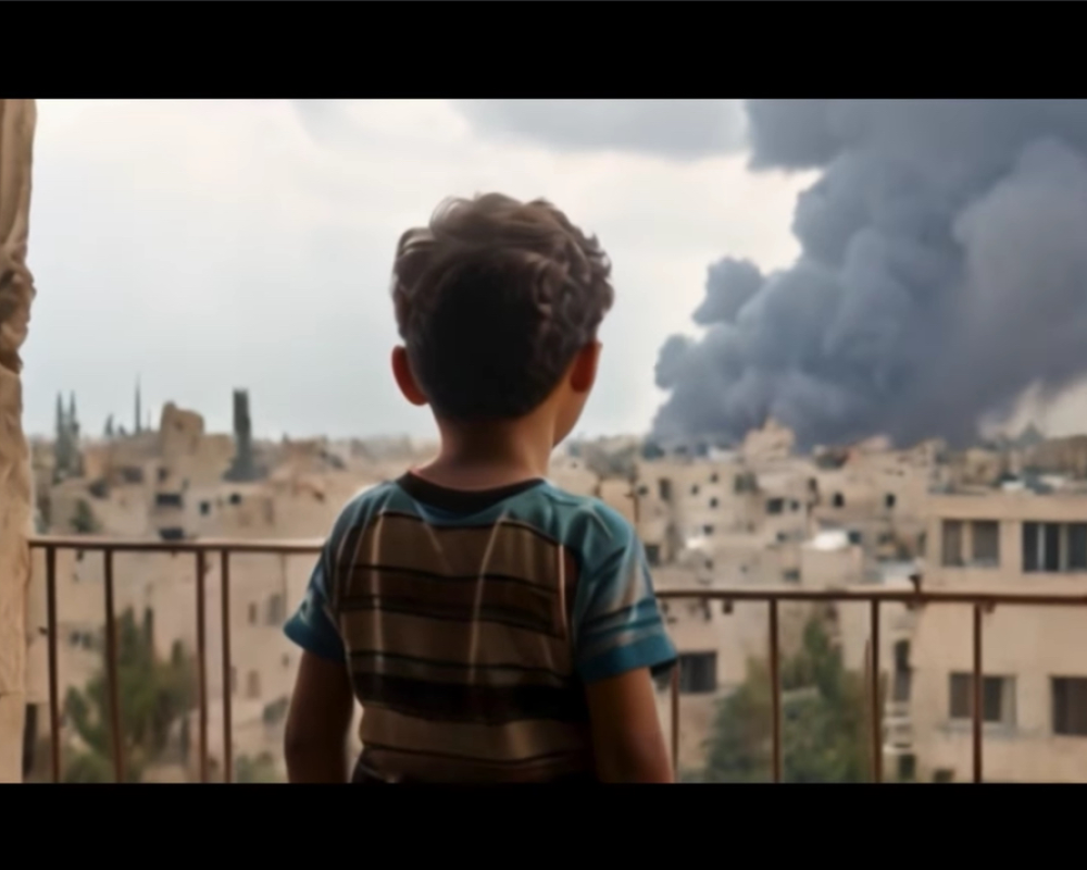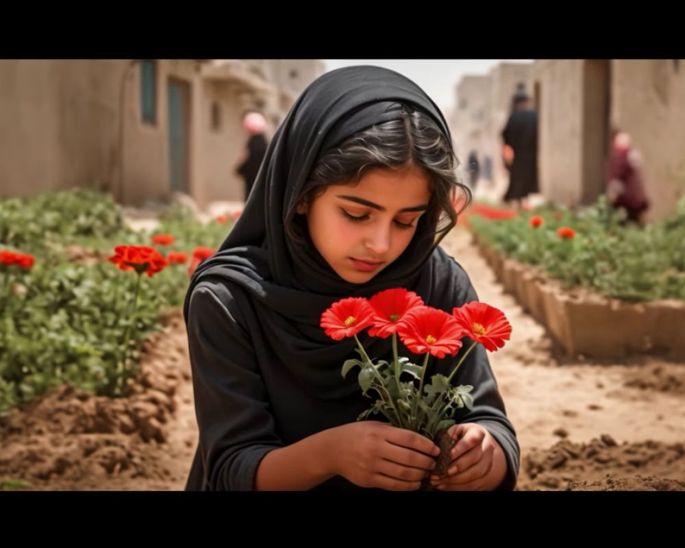 وفي المقابل يتم تصوير صمود وبقاء الفلسطينيين وتمسكهم بارضهم رغم اهوال الحرب التي تشنها إسرائيل في ظل صمت العالم ومشاهدته لما يجري.