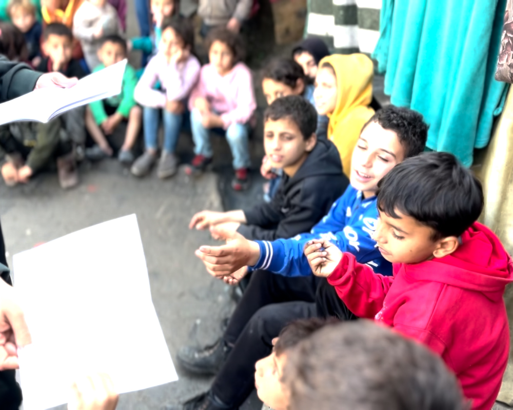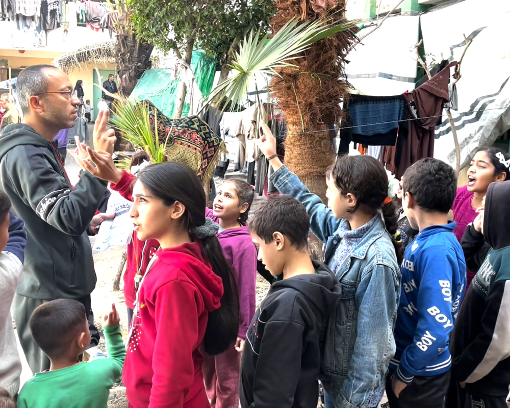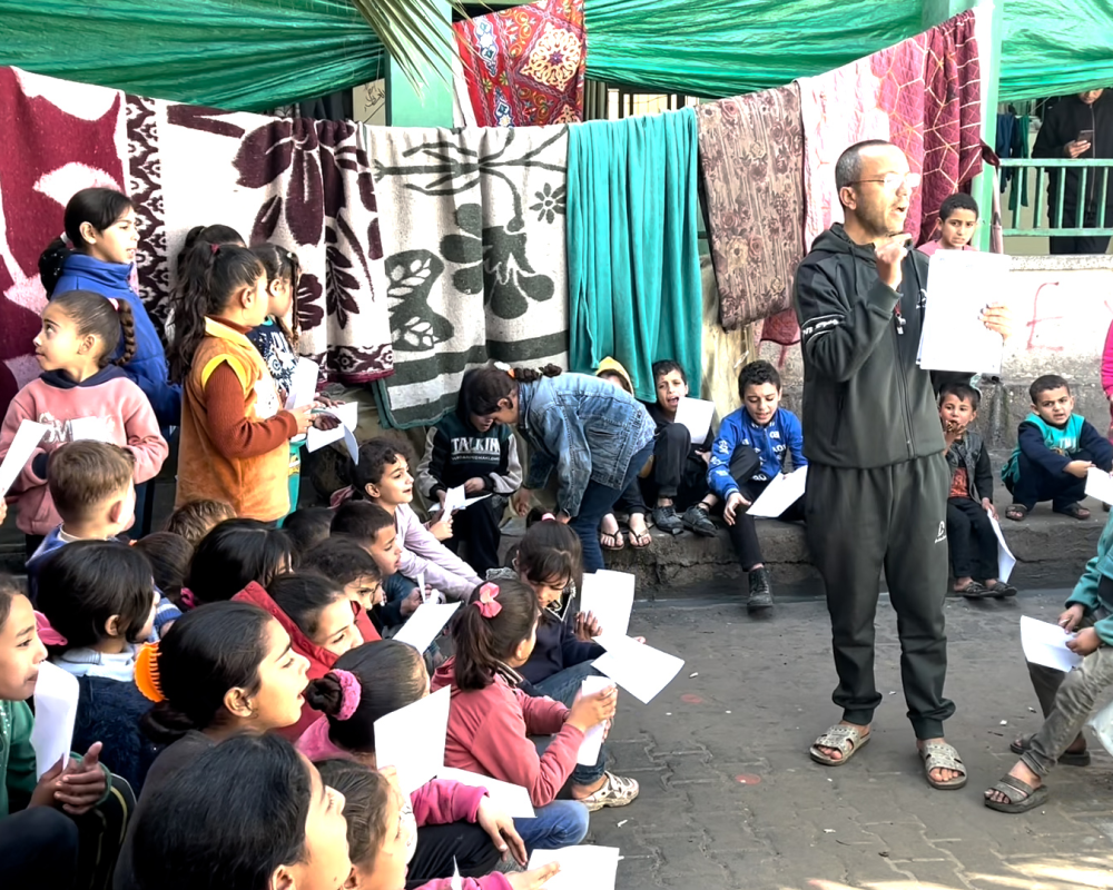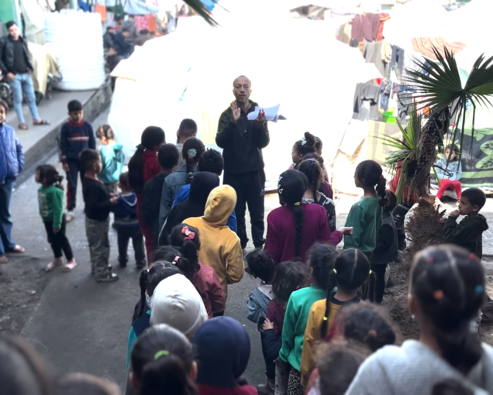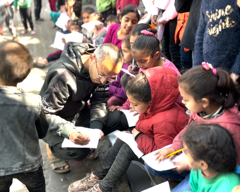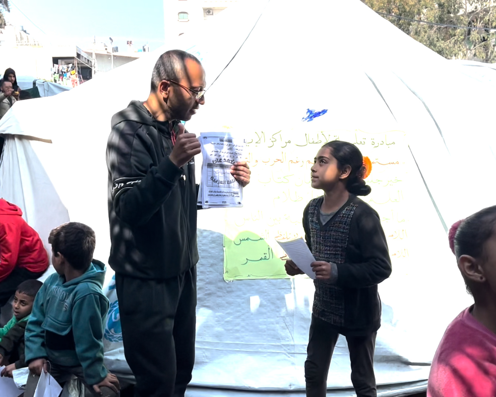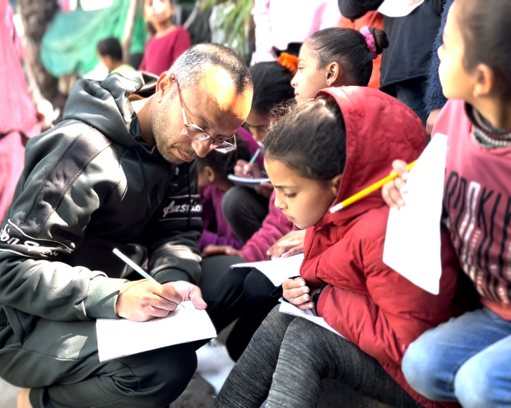اهالي الطلبة في خيام النازحين عبروا عن شكرهم وتقديرهم للاستاذ محمد الخضري على ما قدمه من مبادرة لتدريس ابنائهم على الرغم من كافة الصعوبات .