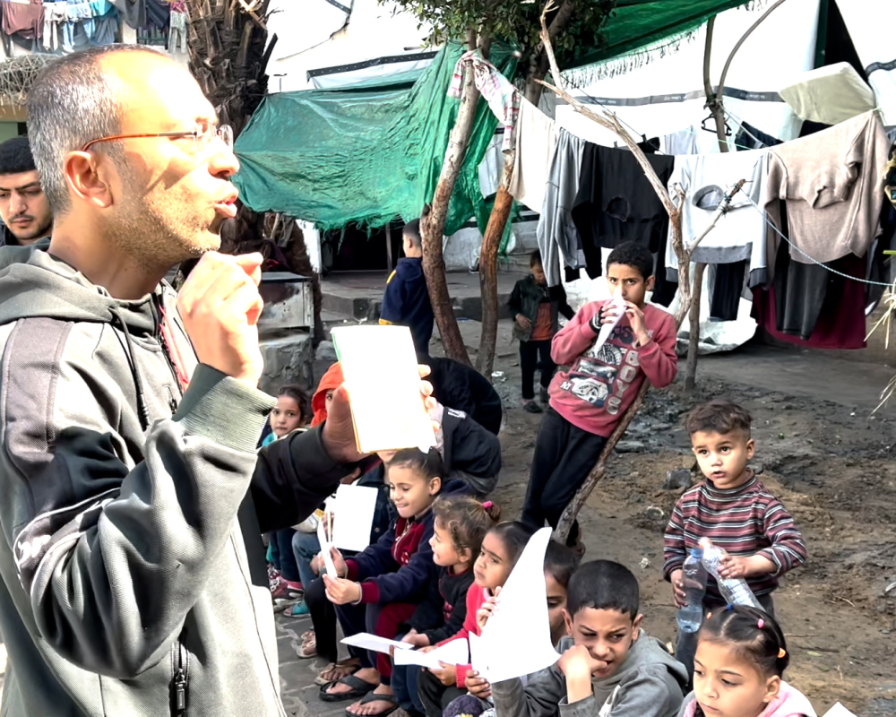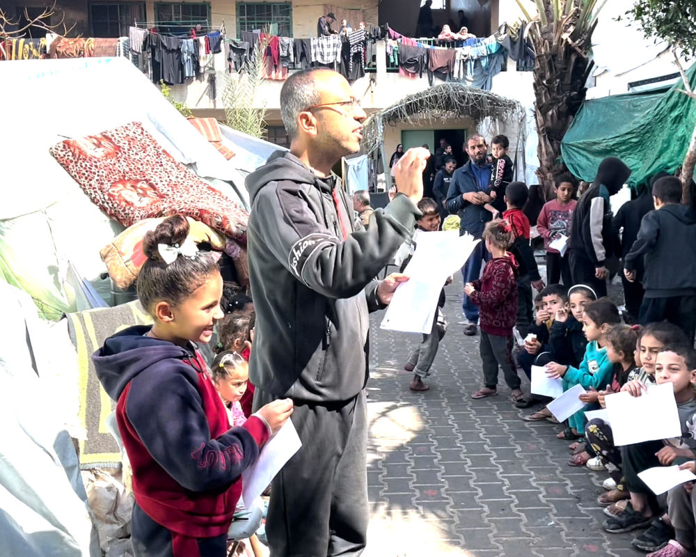 وقال رغم كل هذه المصاعب استطعنا ان نتحدى المستحيل لكي نستمر بهذه المبادرة معربا عن الامل باستمرارها وتوسيع هذه المبادرة حتى بعد وقف اطلاق النار ان شاء الله لما فيه خدمة للطلاب في كافة خيام النزوح في قطاع غزة.