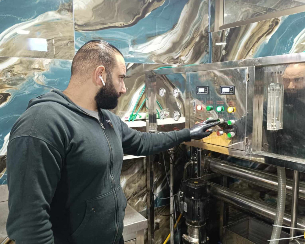 وفي إطار سعيه لمزيد من التطوير وزيادة الاعمال والارباح، أصبح عيد يبحث عن المزيد من الامكانيات بشراء كل ما هو جديد من أدوات وماكنات يحتاجها في التصنيع، لذا تمكن من شراء فلتر مي ومبسطر للخروب في مصنعه الصغير في القرية حيث التقته مراسلة PNN هناك أيضا.