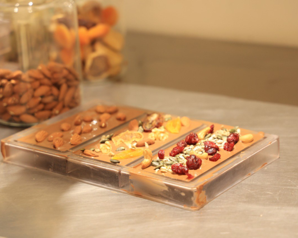 تشرح شهاب طريقة عمل الشوكولاتة بنكهة الميرمية، والعسل، فتقول في البداية نحضر خليط الشوكولاتة الذي تمزجه في ماكينة خاصة في المعمل وتضعها في قالب ومن ثم تنتظر لتبرد الشوكولاتة بدرجة حرارة معينة، وبعدها تضيف الحشوة وهي نكهة الميرمية والعسل داخل الشوكولاتة على شكل بنبونة وتضيف لها المزيد من الشوكولاتة لتغطيتها، وتضعها بعد ذلك في الثلاجة مرة أخرى لدقائق، ومن ثم تستخرجها وتعبئها في العلب الخاصة، ويتم تغليفها وتوصيلها.