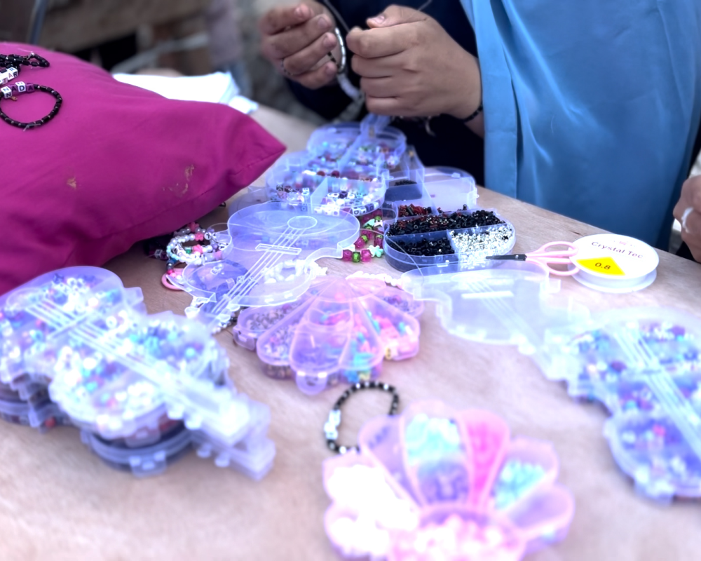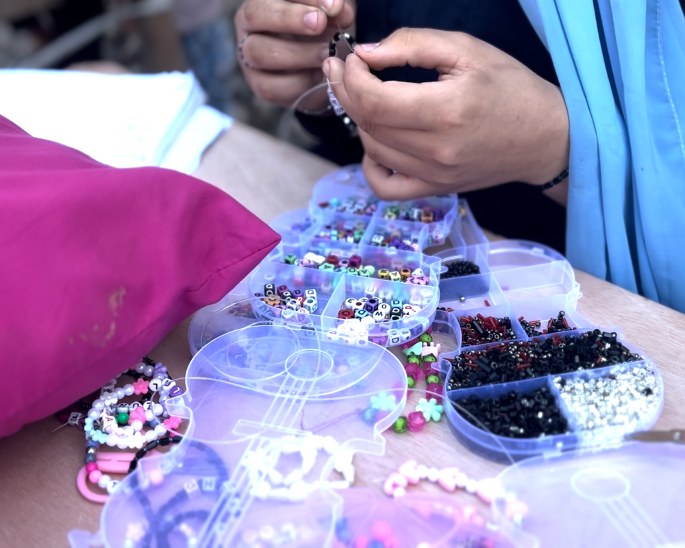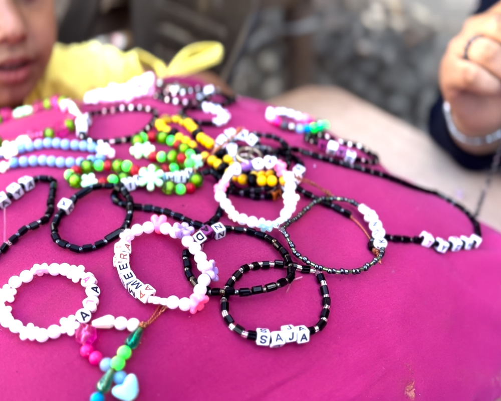 غزة / PNN/ قيل سابقا ان الحاجة ام الاختراع وهذا ما طبقته الشقيقات الثلاث النازحات من ويلات الحرب في غزة ليخلقن من صعوبة الحياة في ظل حرب الإبادة التي يتعرض اليها الفلسطينيون نموذج حياة يبقين فيها على نسبة الامل لحياة أفضل رغم الحرب حيث بدان مشروع خاص لكسب المال والعيش بكرامة من خلال صناعة الاساور وعلاقات الخرز وغيرها من حلي للأطفال التي يتم صناعتها من مواد بسيطة.