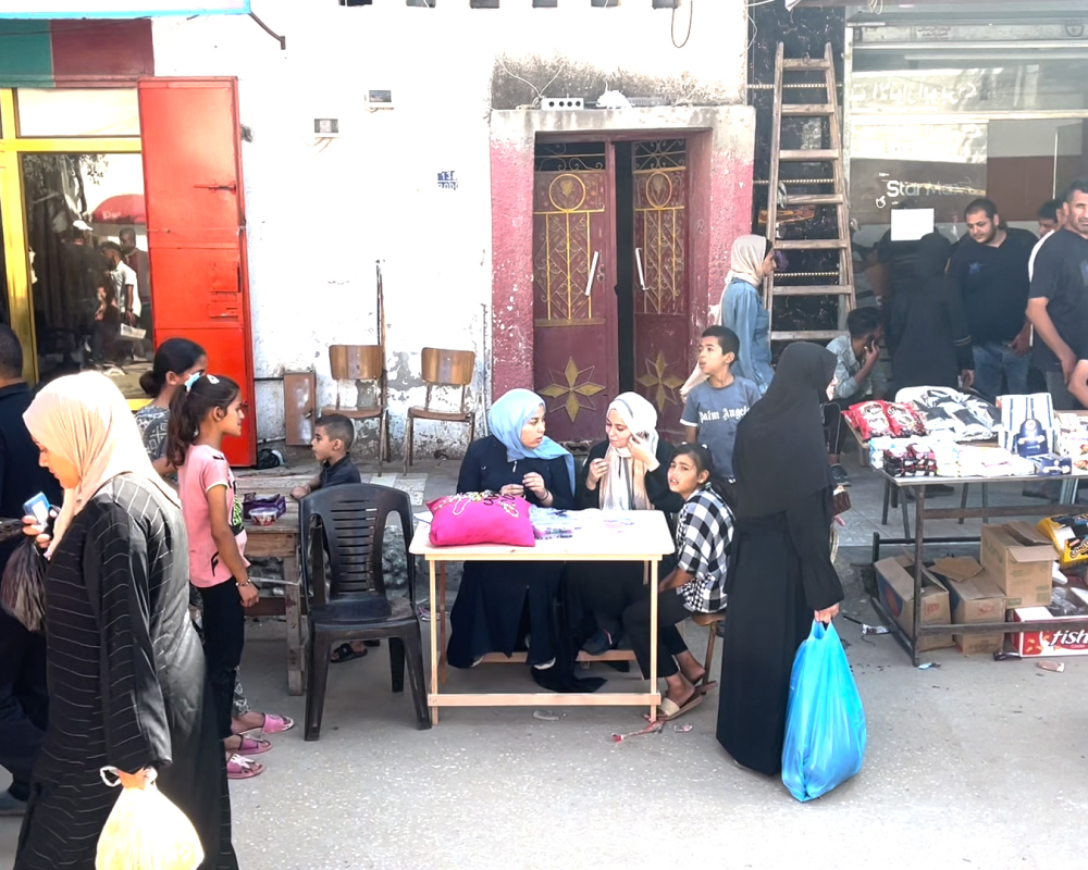 واكدت ان فكرة نزول البنات الى الشارع للعمل في غزة ليست محبذة وغريبة لكن الناس تقبلوها خصوصا عندما يعلموا اننا نعيل ونصرف على أنفسنا ويعرفوا أنى كنت سنة أولى طالبة اعلام لكن الان بعد قصف الجامعة بالحرب لم يعد هناك فرصة أيضا المدارس تدمرت اختي الصغيرة يجب ان يتم تأسيسها في الصف الأول لكن لا مدارس وهذا حال كل أهالي غزة.