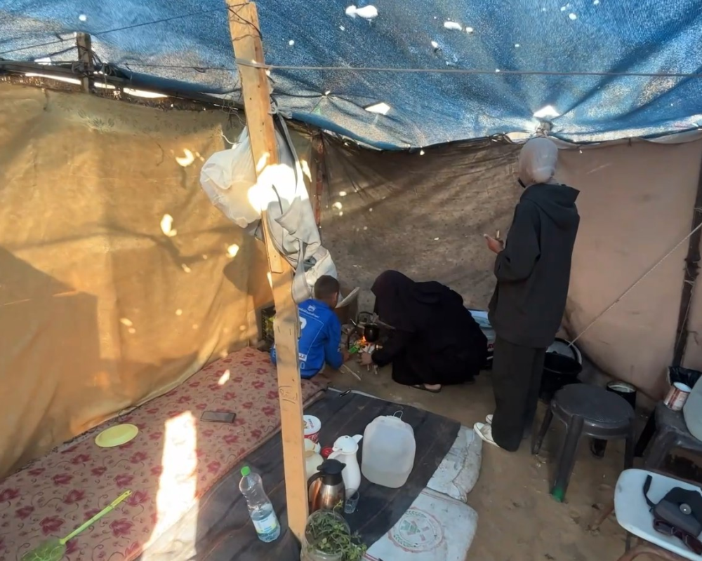 صوت والدة سجود، وحيدة القرار، يُخيم لتتحدث عن تحديات الحياة وصعوبة ومشاق النزوح الذي اجبروا عليه بفعل الة الحرب الاسرائيلية وتقول: "زوجي مصاب بجروح سابقا وبقي في غزة لانه يعمل مسعفا ورفض ترك الناس وفضل خدمتهم على النزوح ،.