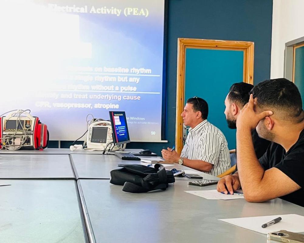 وتضمنت المحاضرة شرح من قبل اخصائي الطوارئ والحوادث الدكتور ناصر جوابرة كيفية قراءة تخطيط القلب وتحليله بشكل كامل وكيفية التعامل مع حالات القلب .