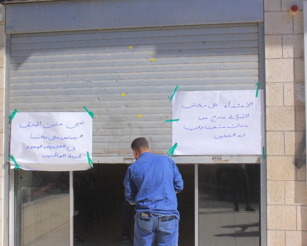 ورأى رئيس فرع العيزرية في شركة القدس أكرم شهابي في حديث مع شبكة PNN ان هذا الاعتداء الذD طال مقر الفرع والعاملين فيه لن يثني الشركة عن تقديم خدماتها للمواطنين.