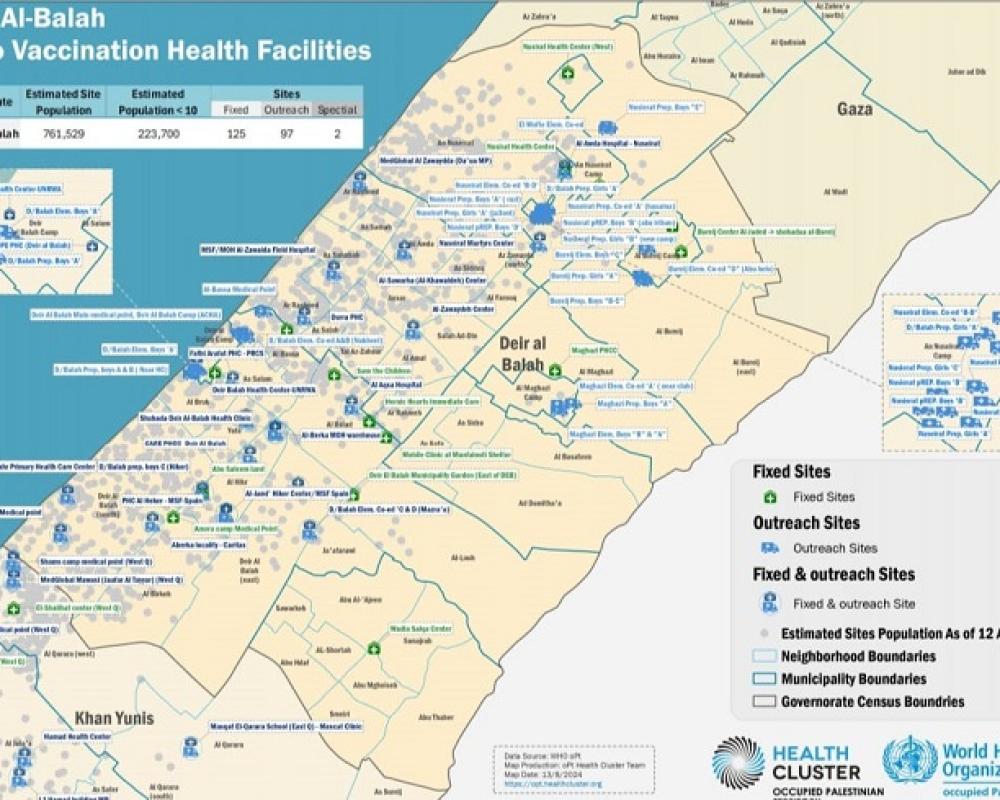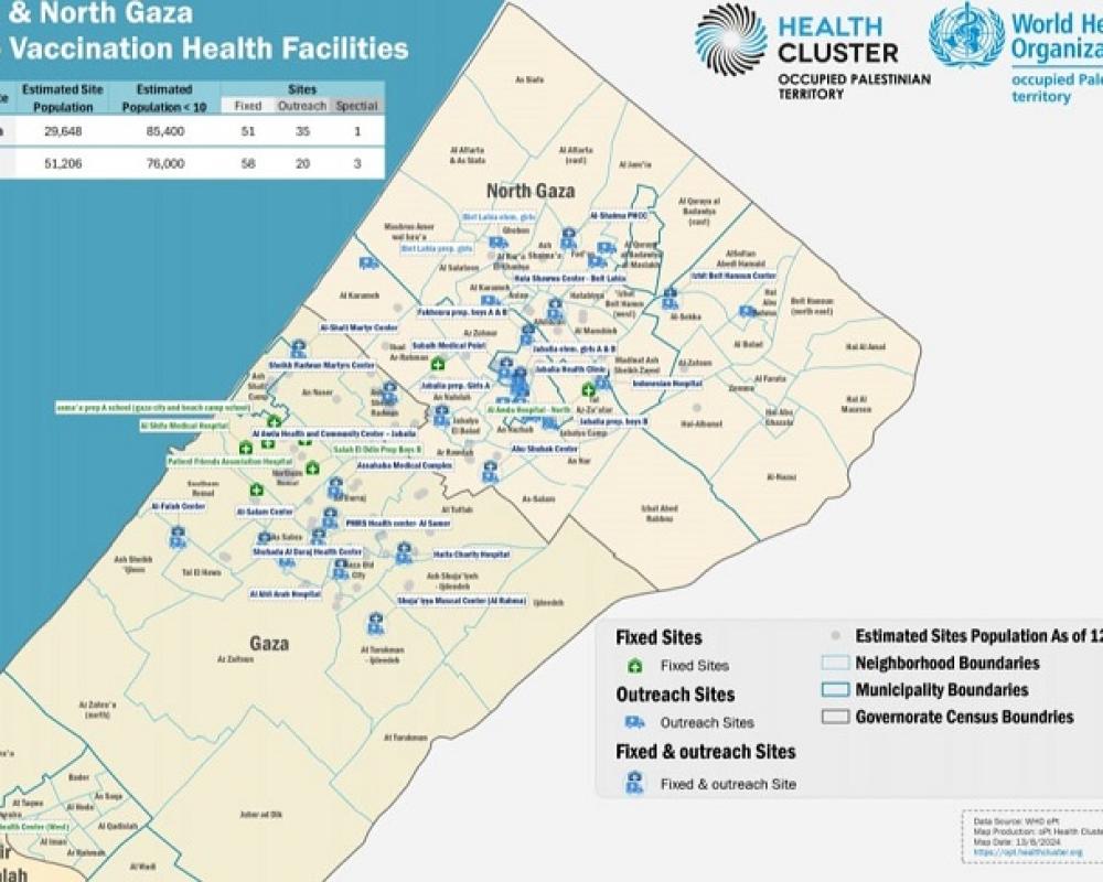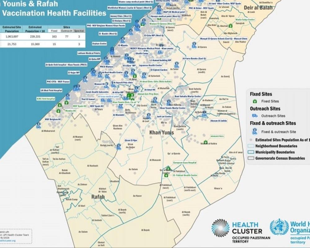 ونشرت وزارة الصحة خرائط ميدانية تبين أماكن ومراكز التطعيم، كما أرسلت رسائل نصية للمواطنين في قطاع غزة لإعلامهم بمواعيد تلقي المطاعيم.