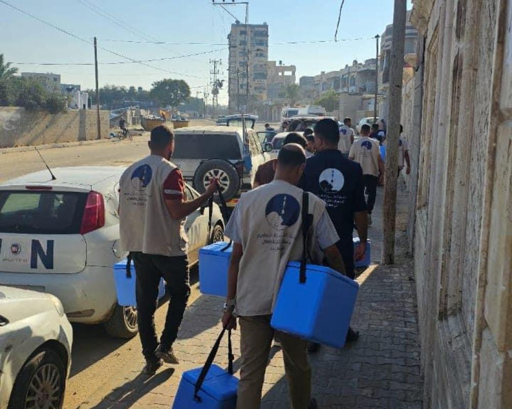 وقالت الوزارة ان طواقمها وطواقم منظمة الصحة العالمية و اليونيسيف ووكالة غوث وتشغيل اللاجئين الفلسطينيين يعملون على تطعيم الأطفال في مراكز ثابتة ومتنقلة تابعة لوزارة الصحة والأونروا، وسط إقبال شديد من قبل الأهالي.