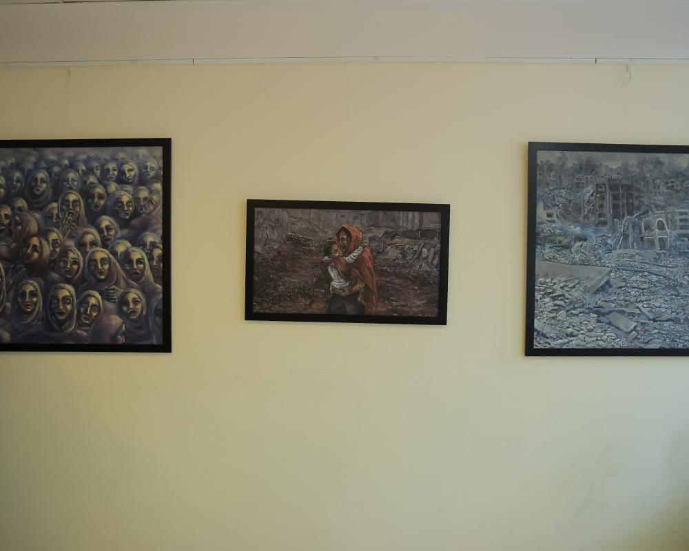 وفي معرض الصور الذي نظمته مركز الإرشاد النفسي والاجتماعي للمرأة، عُرضت لوحات فنية تسلط الضوء على معاناة النساء الفلسطينيات في غزة. شارك العديد من الفنانين في هذا المعرض، حيث حاولوا من خلال أعمالهم الفنية توثيق جزء من الواقع المرير الذي تعيشه النساء في ظل العدوان المستمر.