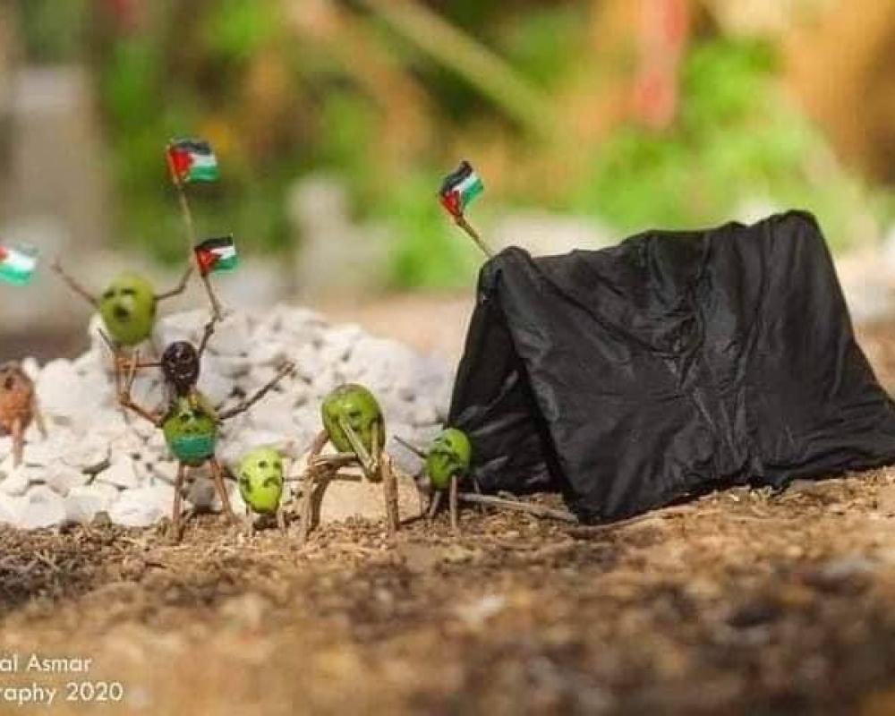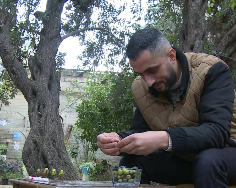 نابلس / PNN / وصال ابو عليا - تصوير محمد نوفل - مع نهاية موسم قطف الزيتون في فلسطين نهاية شهر نوفمبر وبداية ديسمبر في كل عام يقوم الشاب نضال اسمر من قرية روجيب بمحافظة نابلس شمال الضفة الغربية بتجسيد الواقع الفلسطيني من خلال فنه المتميز بحبات الزيتون التي يشكل بها لوحاته الفنية تعكس حياة ومعاناة الفلسطينيين جراء ممارسات الاحتلال حيث يختار في كل عام موضوعا يمثل هذه الحياة تحت الاحتلال.
