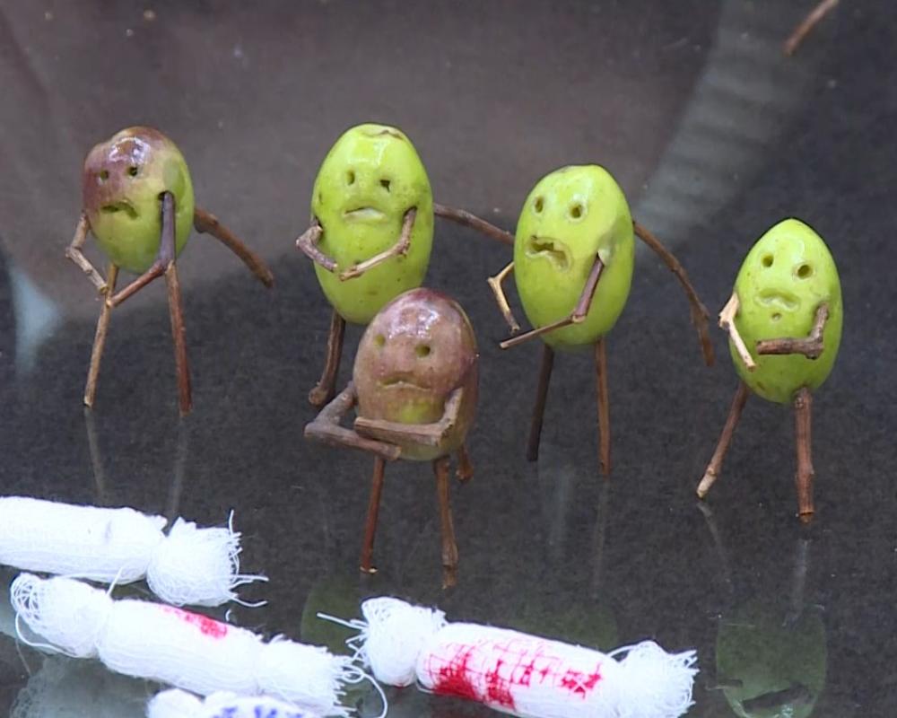نضال الذي يعمل في مهنة تركيب البلاط، يشارك عائلته كل سنة، موسم قطف ثمار الزيتون. وكان في كل ليلة من ليالي الموسم، يعود بعدد من ثمار الزيتون إلى البيت، ويمضي وقتاً في تحويلها إلى ما يشبه الشخصيات في أوضاع مختلفة، ليشكل منها لوحات تحمل دلالات معينة، ذات علاقة بهذا الموسم الزراعي السنوي في الأراضي الفلسطينية.