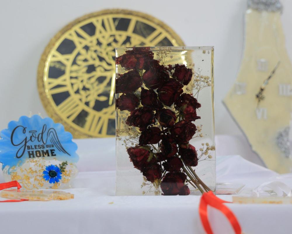 في إحدى المرات، بينما كانت تتصفح مواقع التواصل الاجتماعي، لفت نظرها شخص من خارج البلاد يصنع قطعاً يدوية رائعة باستخدام مادة شفافة تحبس داخلها أزهاراً جميلة. كان هذا هو الشرارة التي أشعلت فكرة مشروعها. بدأت في البحث عن هذه المادة وما هي طرق استخدامها، وفي النهاية قررت أن تطلب المواد من الخارج. ولكن، كانت البداية صعبة؛ فقد تأخرت الشحنات لبضعة أشهر، وكانت المواد نادرة، إضافة إلى أن مشروعها كان جديداً على المجتمع المحلي.