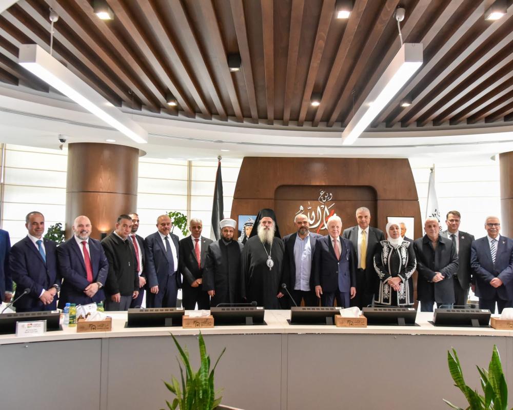 بدوره، قال المطران عطا الله حنا "إننا جئنا لنقول للأخ الحرازين تحية القدس من رحاب أزقتها وكنائسها ومساجدها، وهي بانتظارك لأنك تأتي إلى القدس ليس زائرًا بل إلى بلدك ومدينتك ومقدساتك"، وأضاف، "نقف إجلالًا لكل شهدائنا في غزة وفي فلسطين وهم يدمرون ونحن نبني، وهم يريدوننا أن نكون غارقين في ثقافة اليأس والإحباط، ونحن نقول إننا سنبقى متمسكين بانتمائنا إلى هذه الأرض وتشبثنا بكل حبة تراب من ثرى هذه البقعة المباركة، فهذه هي فلسطين بمسيحييها ومسلميها وبقيامتها وأقصاها، متحدين في جسد واحد وعائلة واحدة لا تقبل القسمة على اثنين، وستبقى القدس عاصمتنا وقبلتنا وأصالة وحدتنا".
