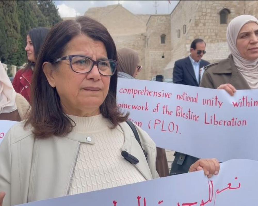 وأضافت خير في حديث مع شبكة فلسطين الإخبارية اننا نقف اليوم امام كنيسة المهد ونطالب من كل نساء العالم باستمرار بالوقفات الاحتجاجية لتضامن مع النساء بفلسطين مشددة على مطالبة المجتمع الدولي للضغط على حكومة الاحتلال لوقف العدوان من جهة ومطالبته تقديم مرتكبين حرب الإبادة الى محكمة الجنايات الدولية.