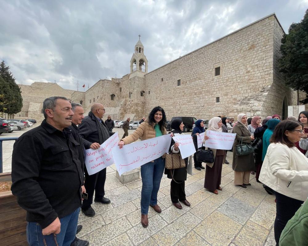 واكد ان وقفة اليوم ومن على بلاط كنيسة المهد تمثل رسالة الى العالم اجمع من هذا المكان المقدس بضرورة العمل على حماية النساء الفلسطينيات و وقف الجرائم التي ترتكب بحقهن من جهة ومحاسبة كل من قام بتنفيذ جرائم حرب بحق النساء بشكل خاص والشعب الفلسطيني بشكل عام.