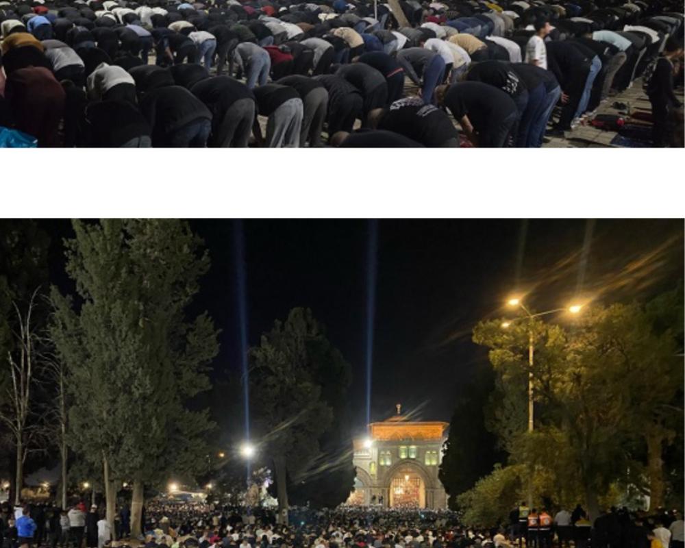 وقالت دائرة الأوقاف الإسلامية في القدس المحتلة إن 100 ألف مصل صلاتي العشاء والتراويح وختم القرآن الكريم في المسجد الأقصى المبارك بمدينة القدس المحتلة، في اليوم الثامن والعشرين من شهر رمضان المبارك.