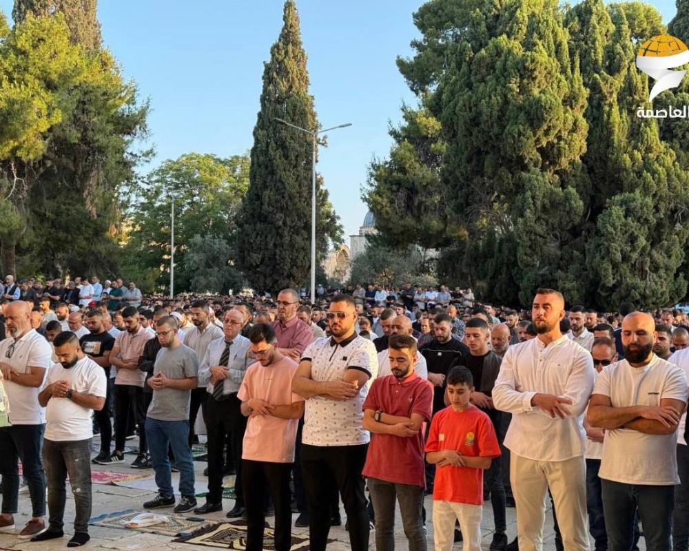 وعلّت التكبيرات إيذانًا بحلول أول أيام العيد، وسط حشود كبيرة من المصلين، رغم تضييقات الاحتلال ومستعمريه.