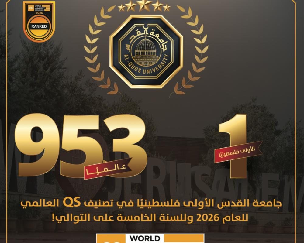 القدس /PNN/ حصدت جامعة القدس المرتبة الأولى فلسطينيًا في تصنيف QS لدورة 2026 وللسنة الخامسة على التوالي، وهي الجامعة الوحيدة وطنيًا ضمن نادي أفضل 1000 جامعة حول العالم، حيث احتلت المرتبة 953 عالميًا لتسجل تقدمها بـ 119 مرتبة منذ دخولها التصنيف العالمي.