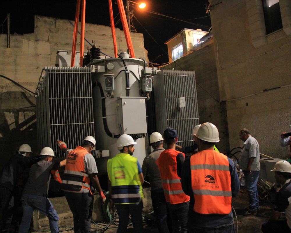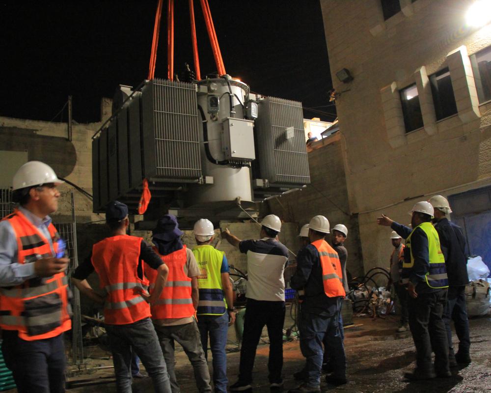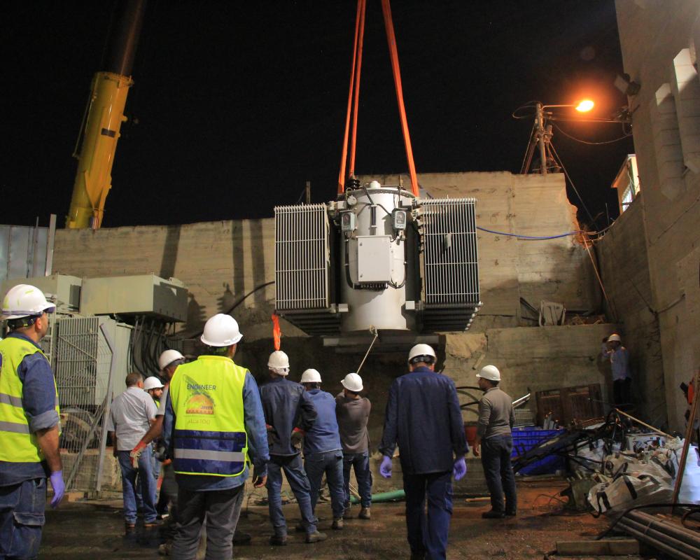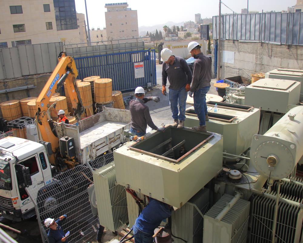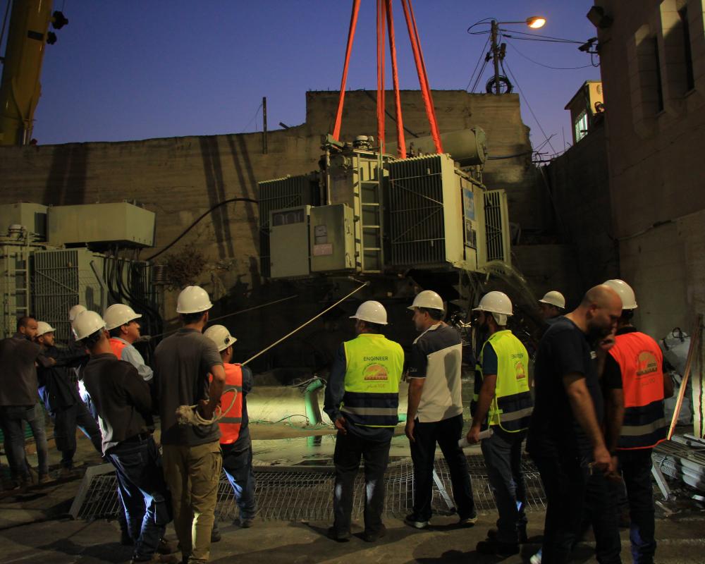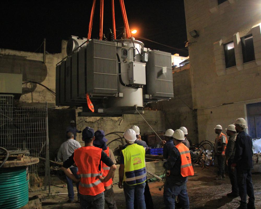 وقامت طواقم الشركة منذ ساعات الفجر الاولى باجراء كافة الاستعدادت التقنية والفنية لتركيب محول القدرة الجديد بدل احد محولات القدرة الذي توقف عن العمل نتيجة الضغط الكبير على الاحمال الذي لم تشهده الشركة من قبل بسبب موجة الحر التي لم تحصل في فلسطين منذ العام ١٩٤٢ وفق محطات الارصاد الجوية المختلفة.